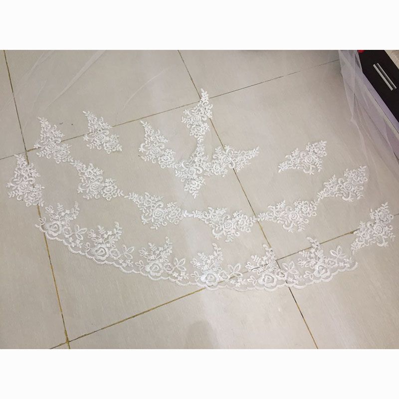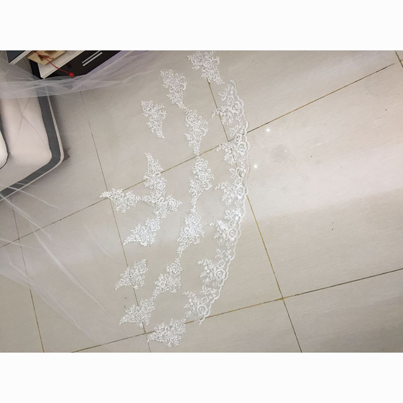 3 Meters Long Cathedral Length Appliques Bridal Veils With Comb 8471776339#