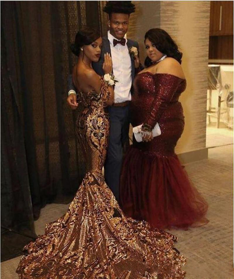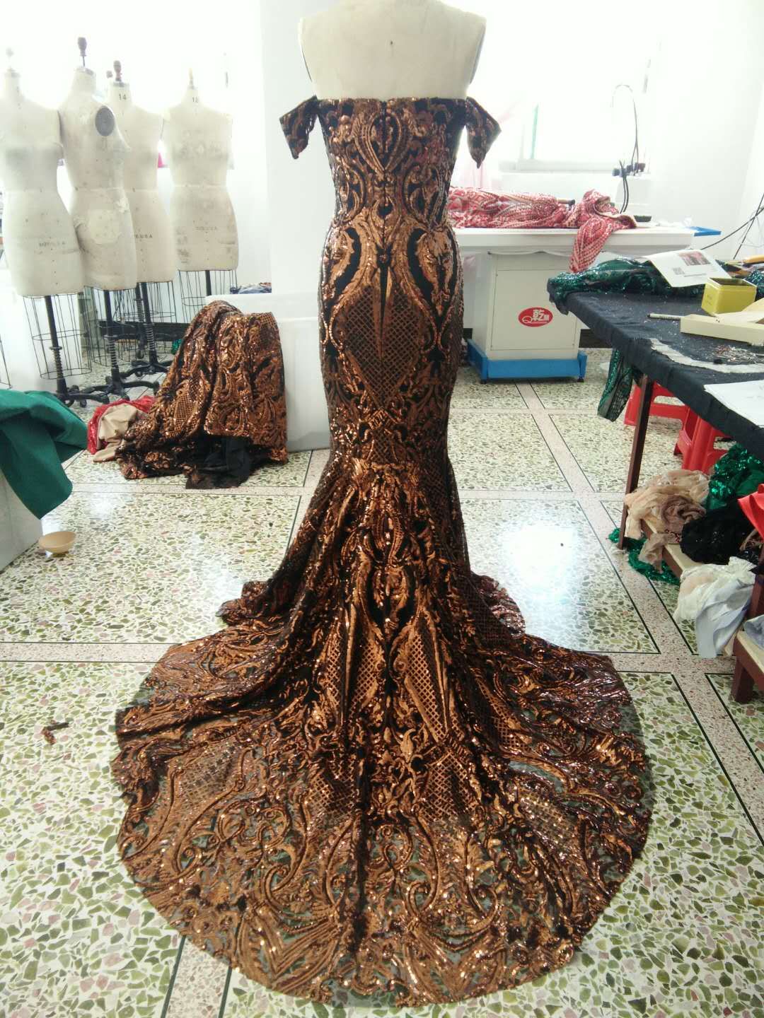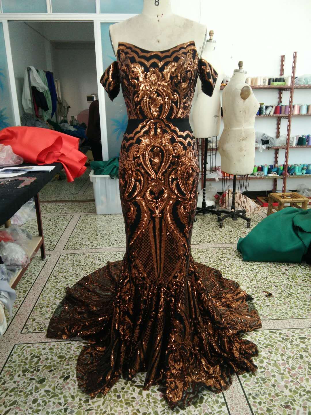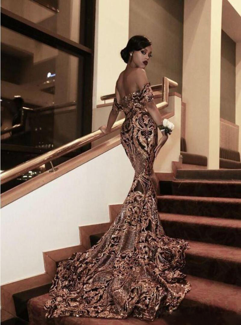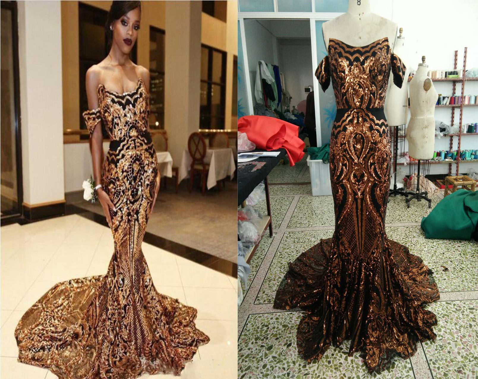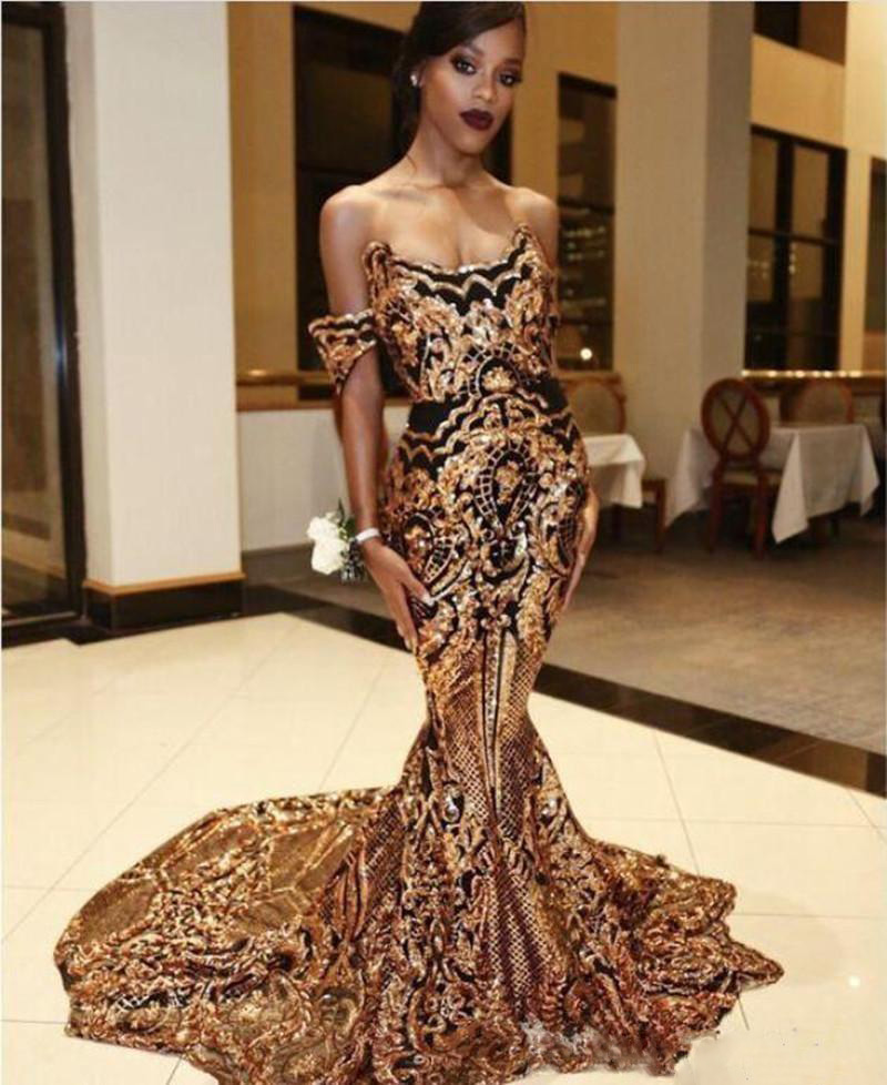 Black Gold Off Shoulder Sweep Train Wedding Evening Gowns 8463444117#