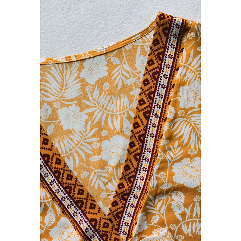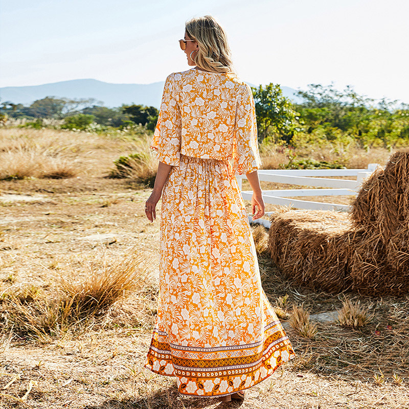 • Boho Floral Plunging Crop Top & Split Thigh Skirt Set #88211592175
