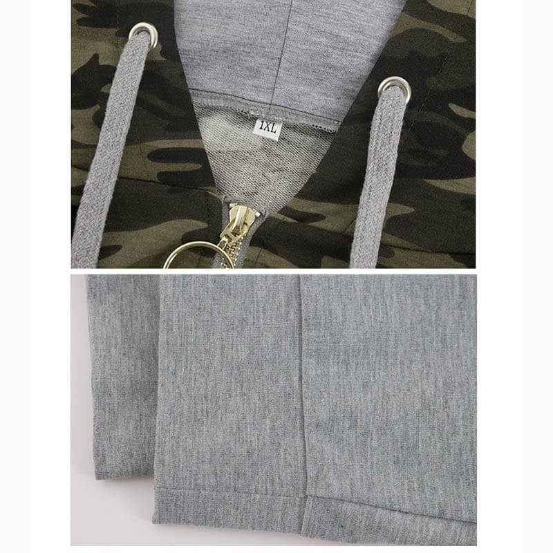 • Contrast Color Drop Shoulder Zip Up Drawstring Thicken Hoodie 88211592373#