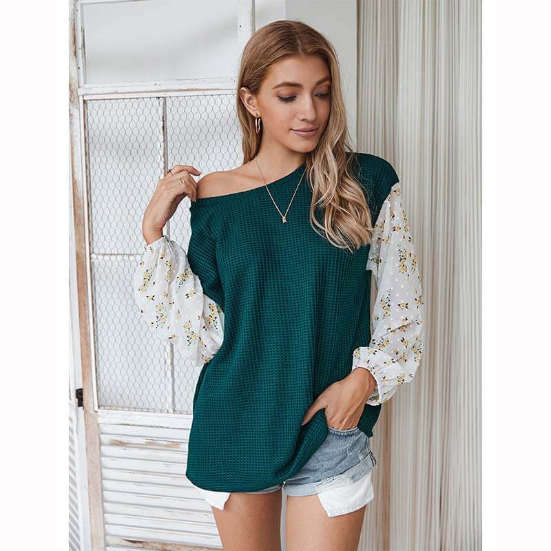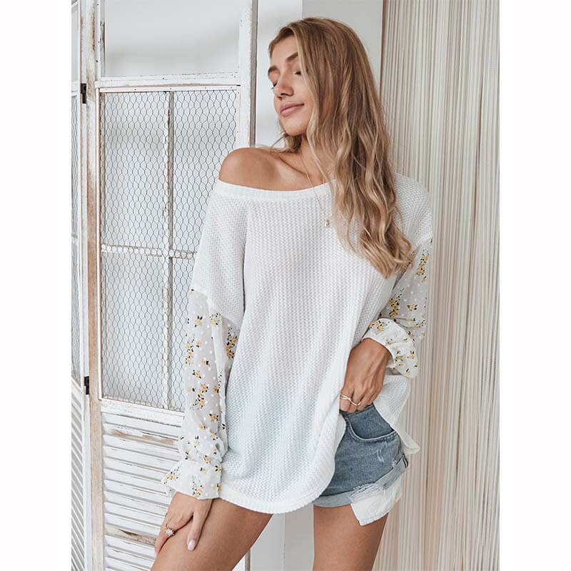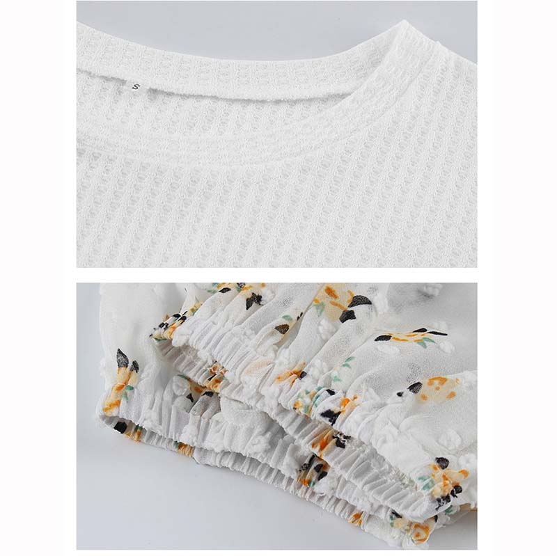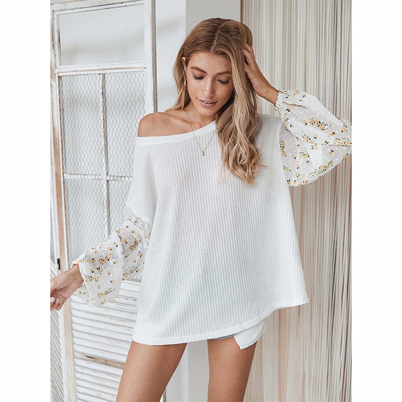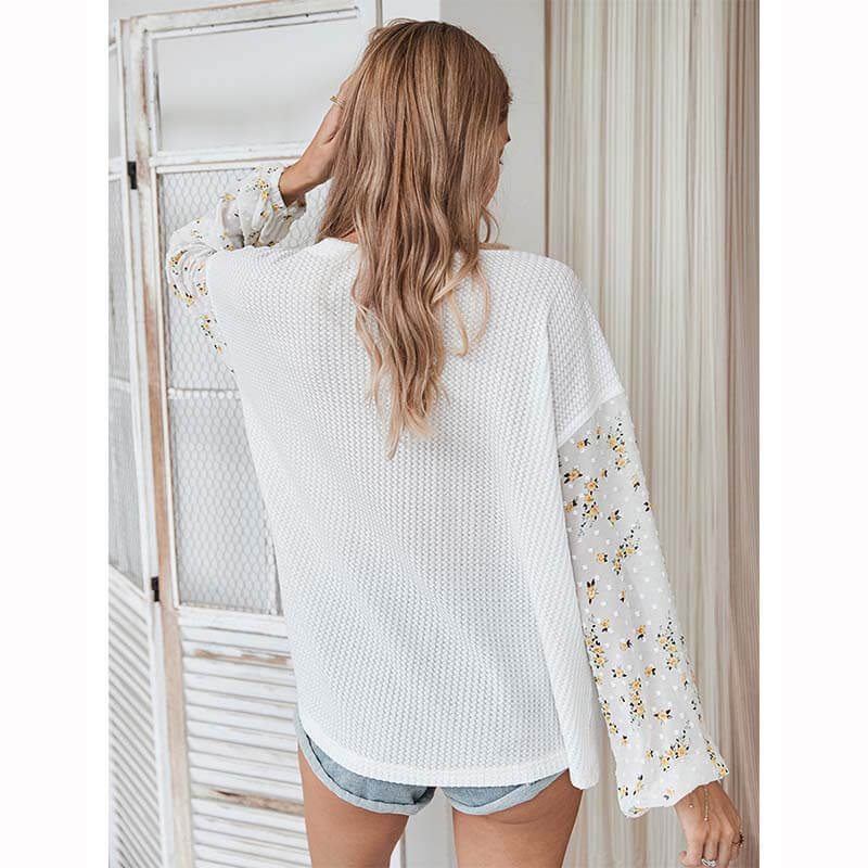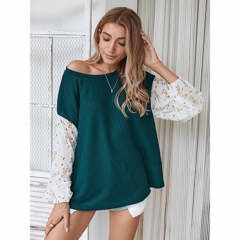 Details:Drop Shoulder,Floral Print,Contrast Sleeve