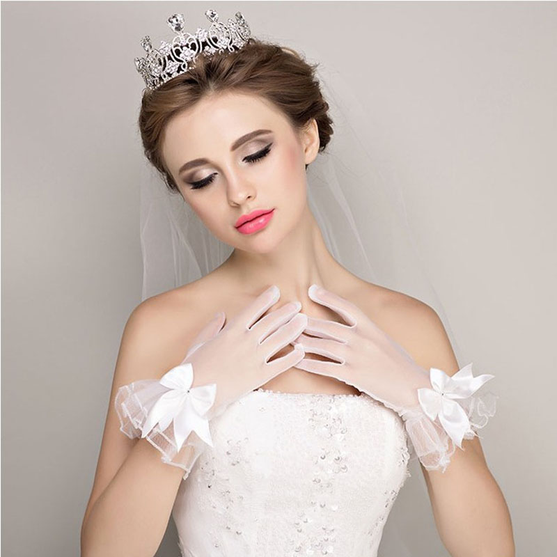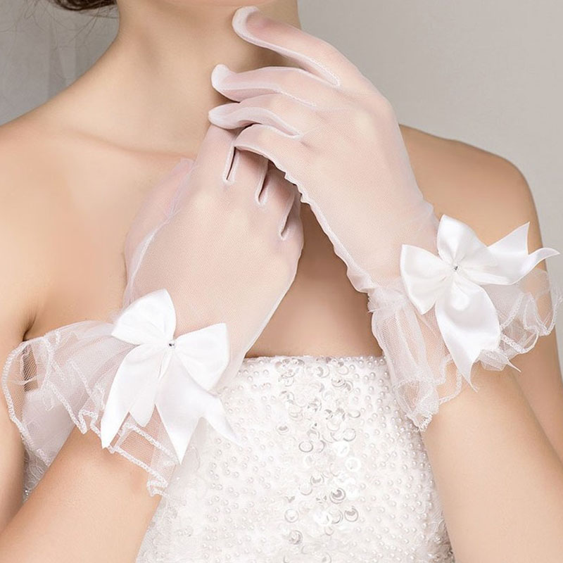 Full Finger Wrist Length Sheer Tulle Bridal Gloves 88211592212#