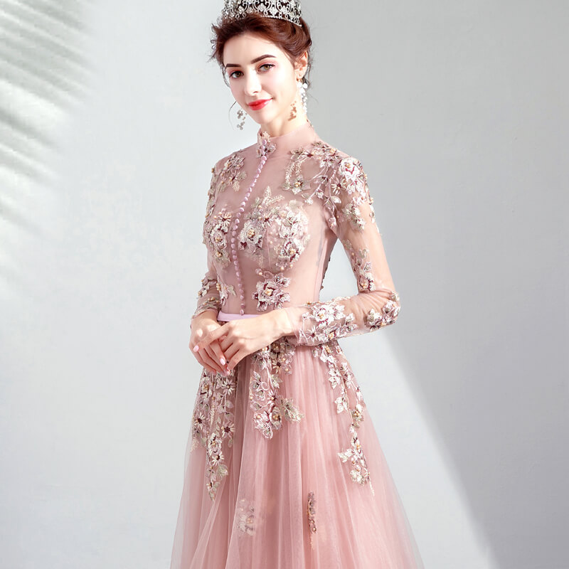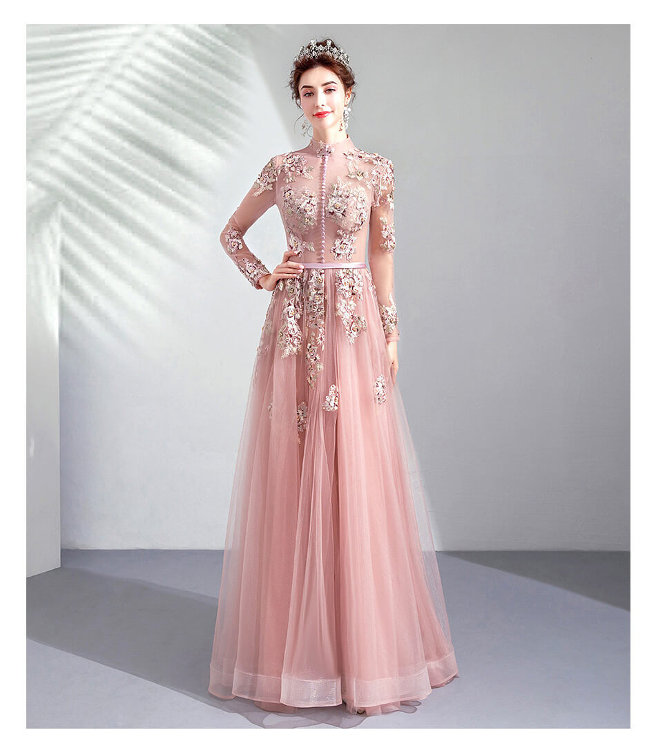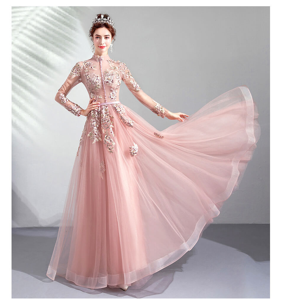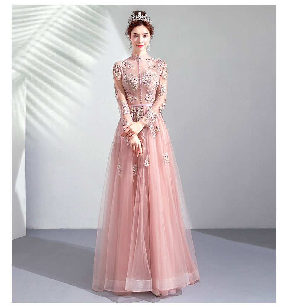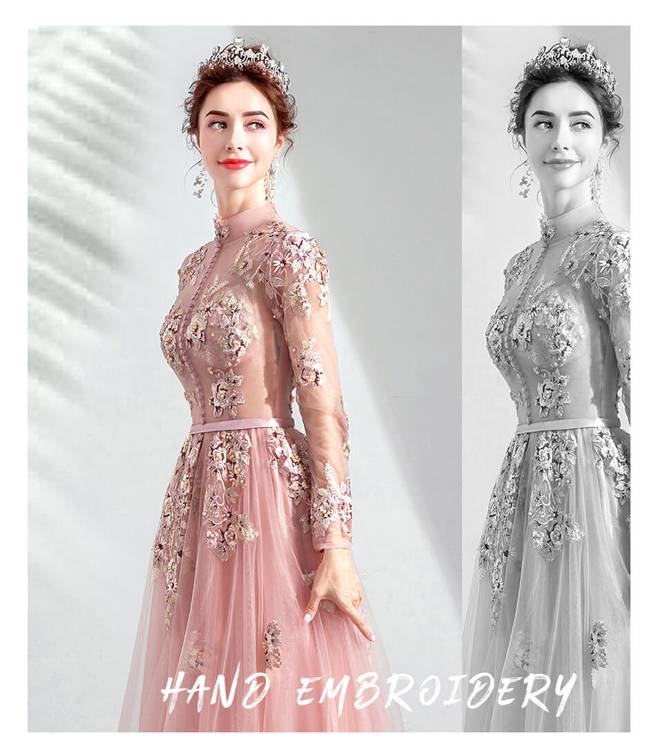 Good Quality Hand Made Luxury Embroidery High Neck Evening Prom Dresses 8436579983#