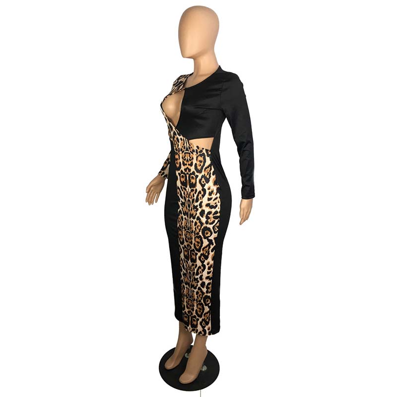 Details:Contrast,Animal Print,Maxi,Bodycon,Hollow Out