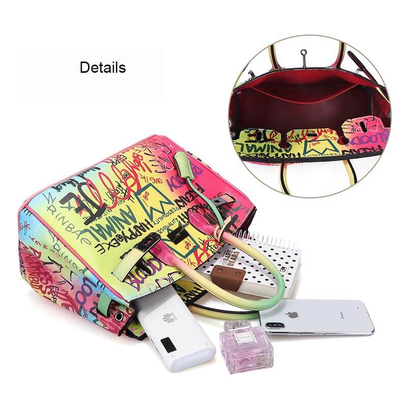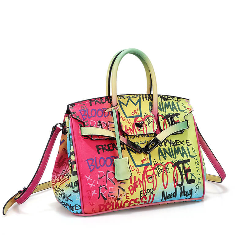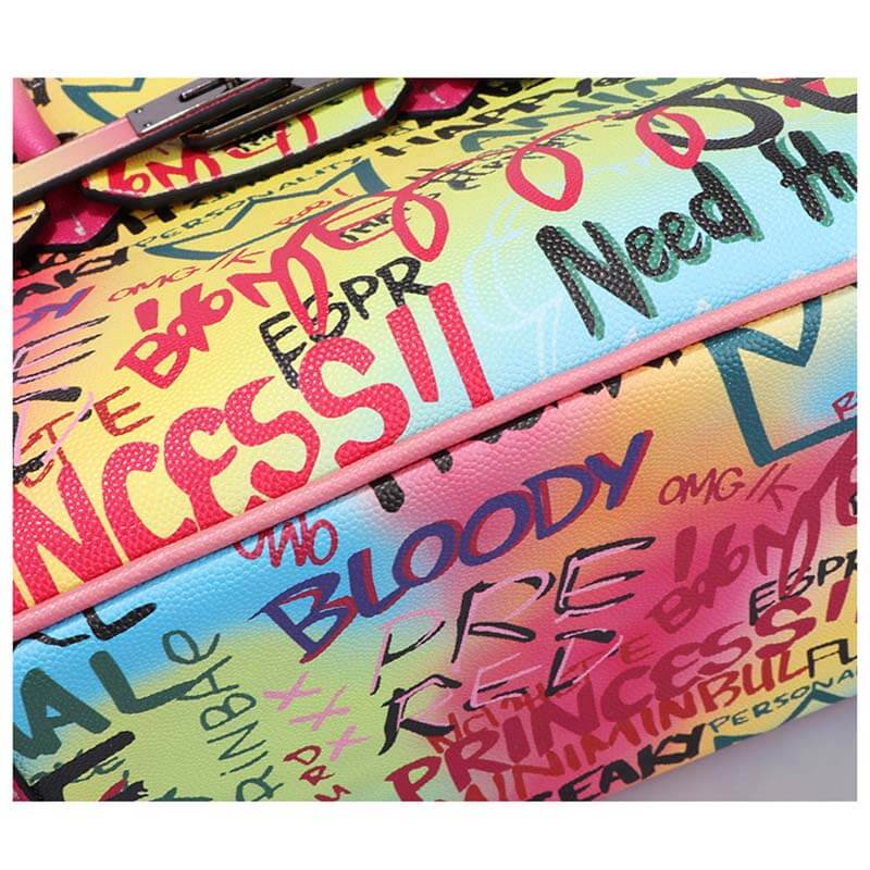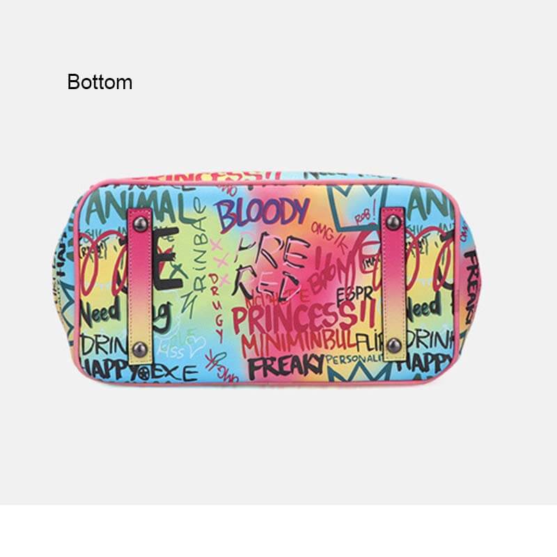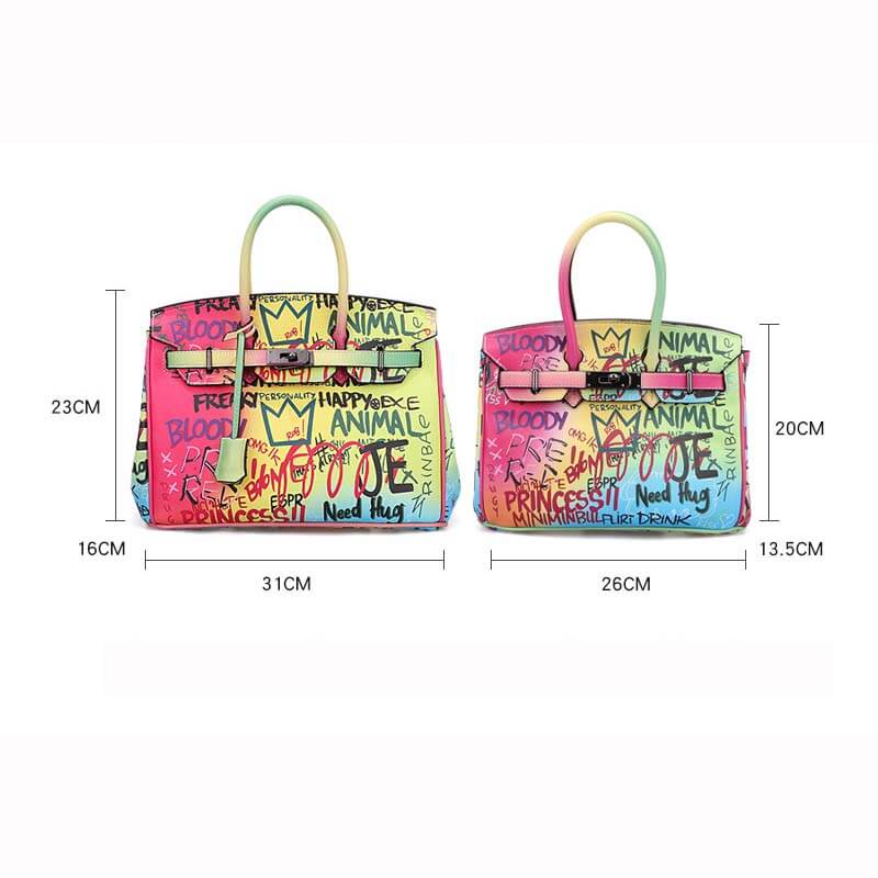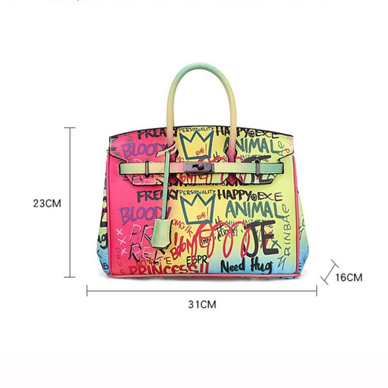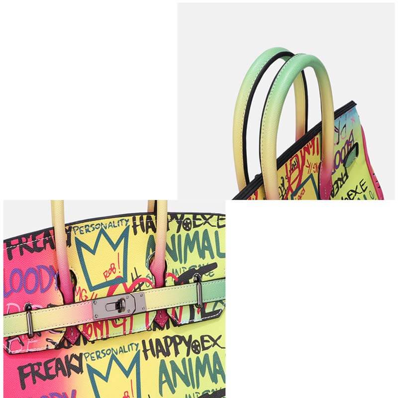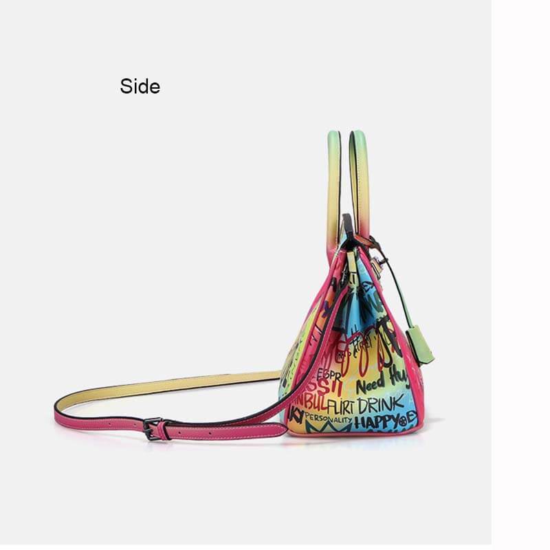 • Luxury Rainbow Graffiti Handbag Leather Bag 88211592387#