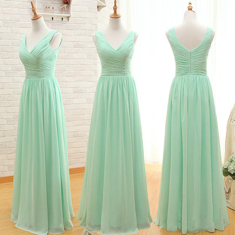 • Mint Green Long Chiffon Bridesmaid Dress 2020 A Line Pleated Beach Bridesmaid Dresses Wedding Guest Gowns 8471697740#