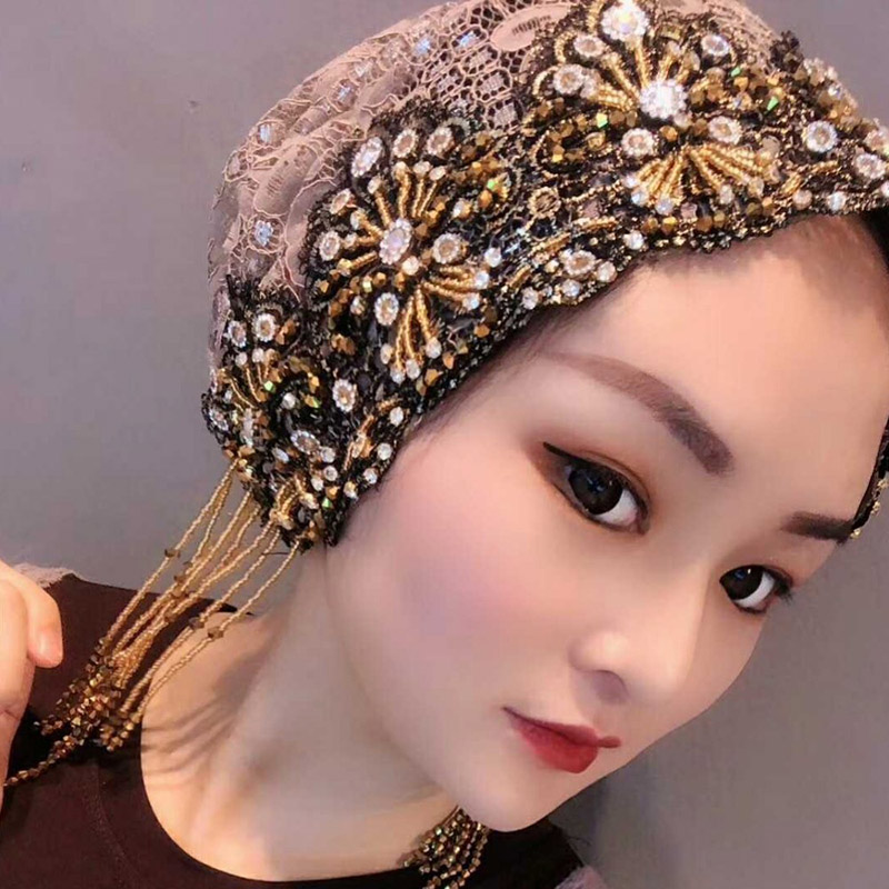 Muslim Turban-Women's Turban Beanie Hats Rhinestones Beading Headpieces #8745124816