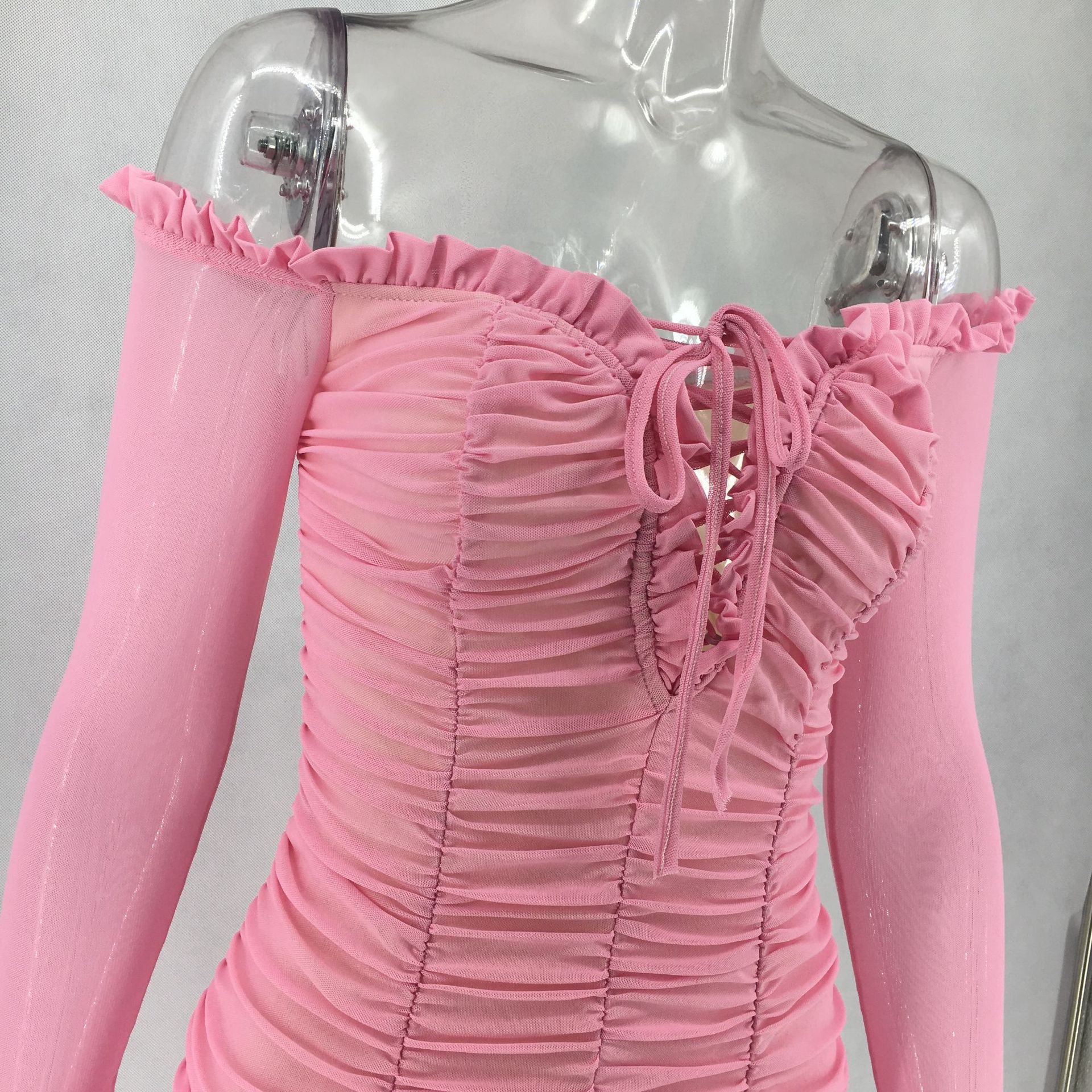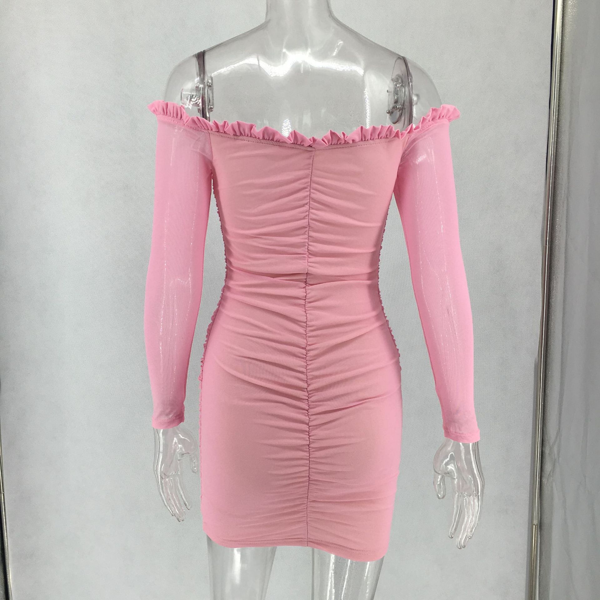 • Off Shoulder Ruched Bodycon Dresses 88211592277#