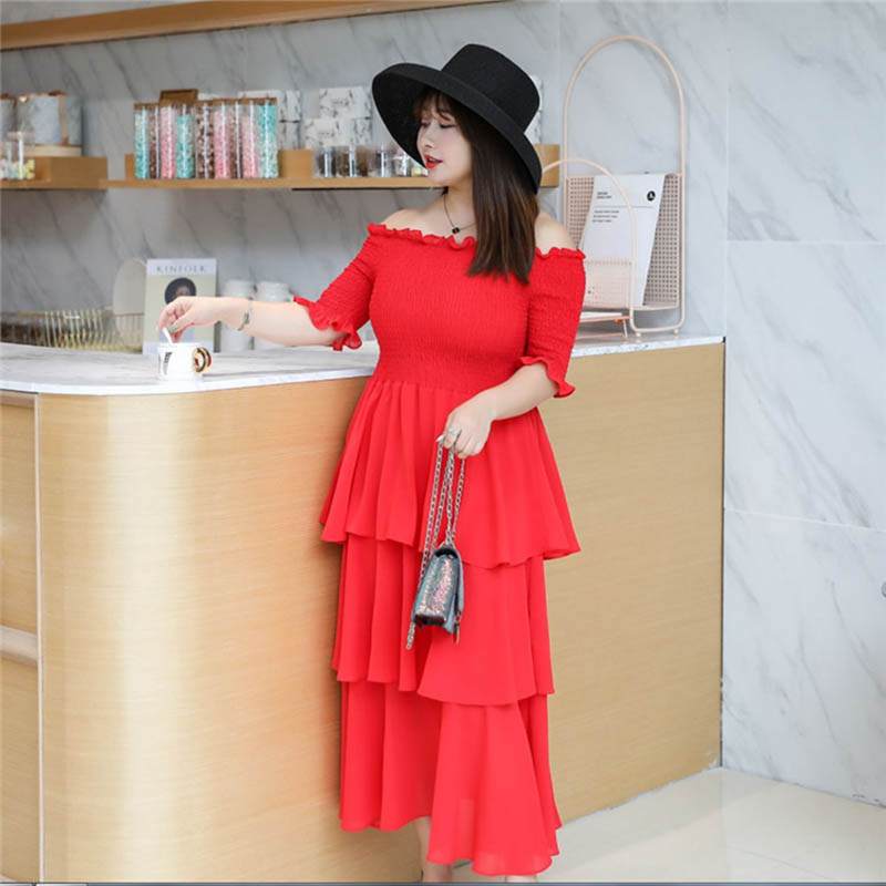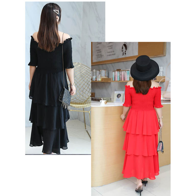 Off Shoulder Tiered Smock Maxi Dress Plus Size #88211592128