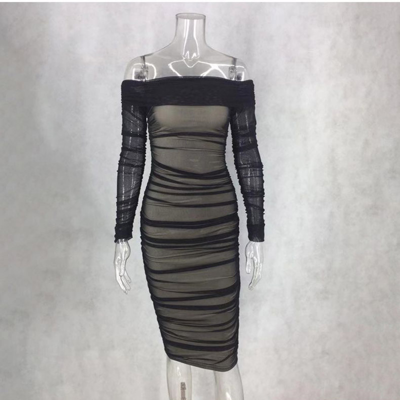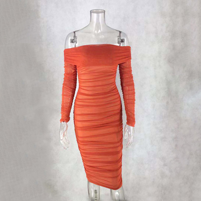 • Off The Shoulder Skintight Midi Dresses 88211592231#
