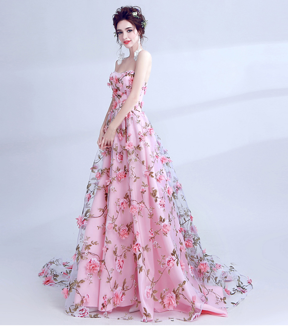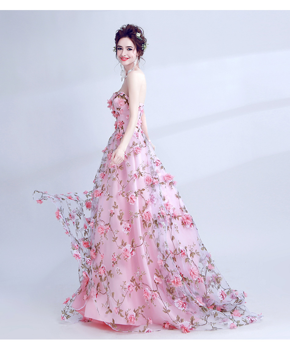 Pink Strapless Sweep Train Evening Prom Dresses 8477373573#
