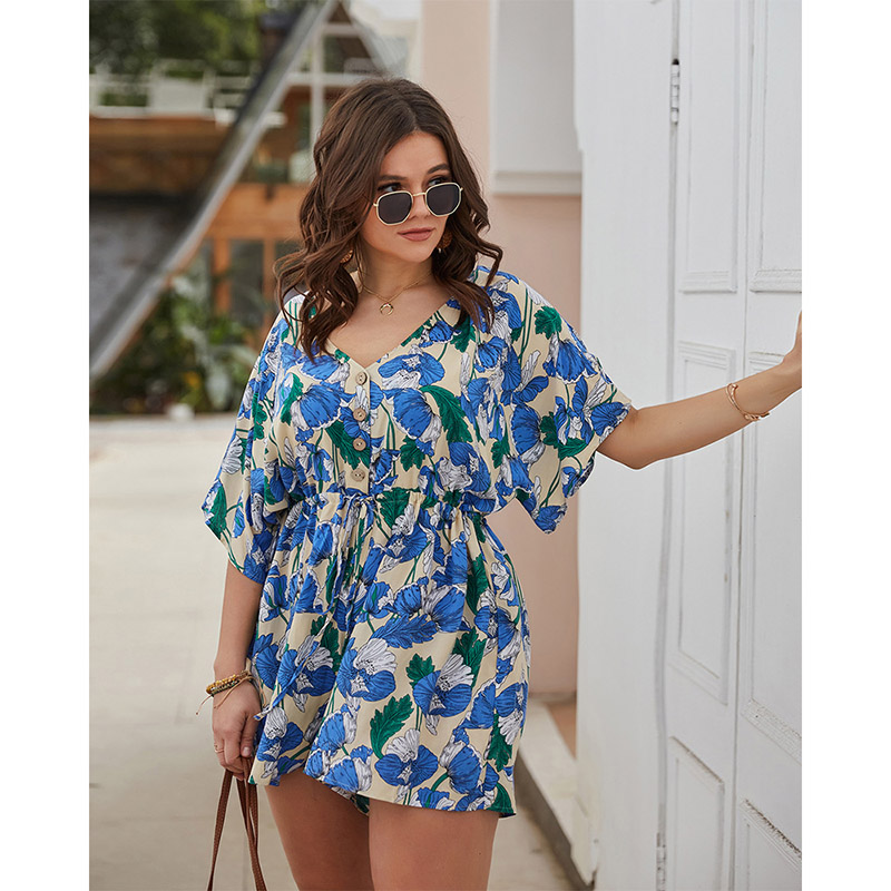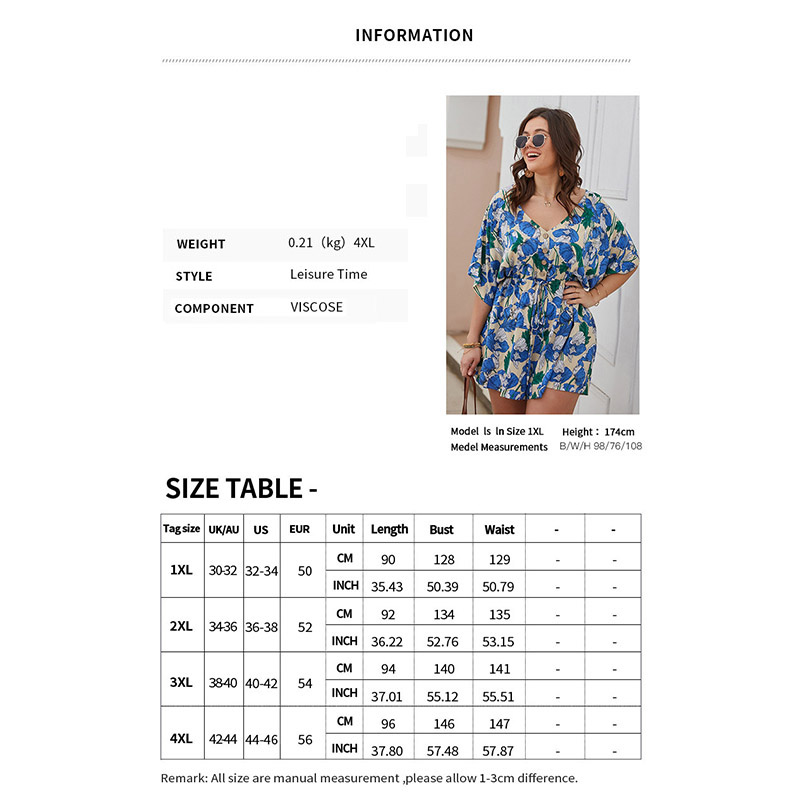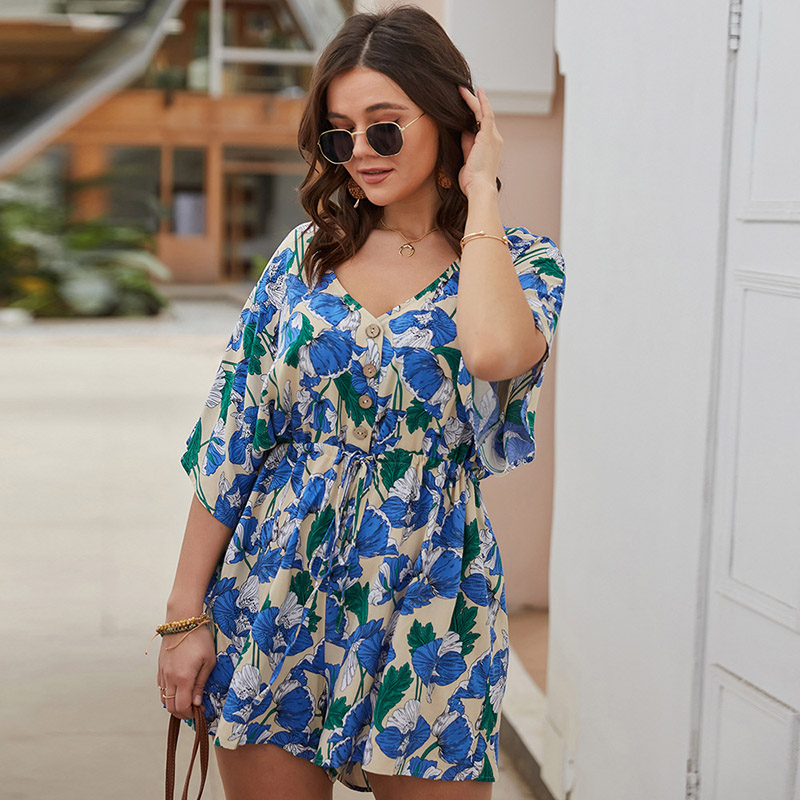 • Plus Floral Print Wide Leg Romper 88211592530#
