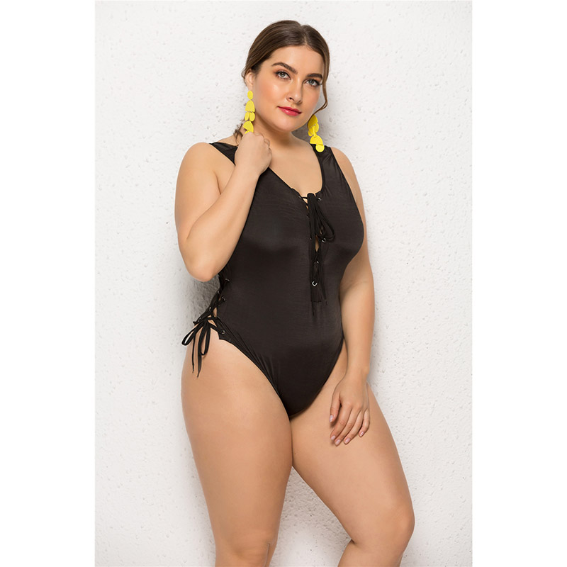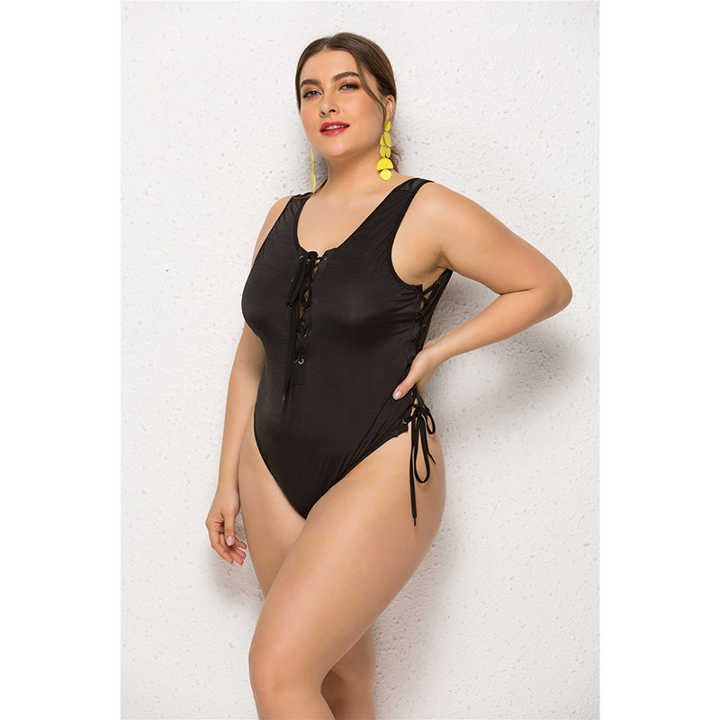 • Plus Lace-Up Front One Piece Swimsuit in Black 88211592113#