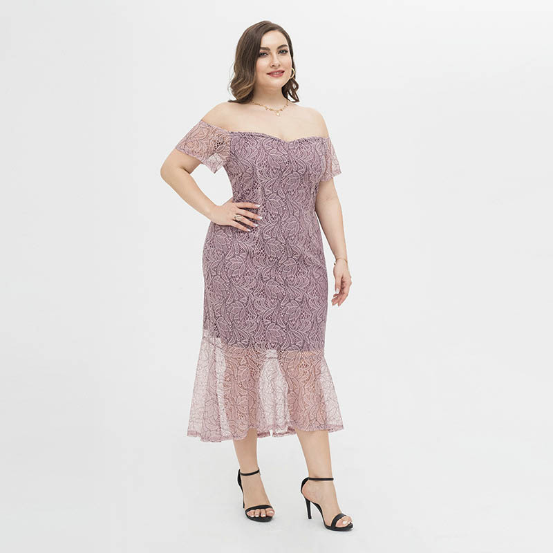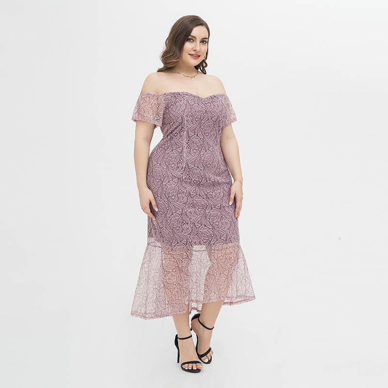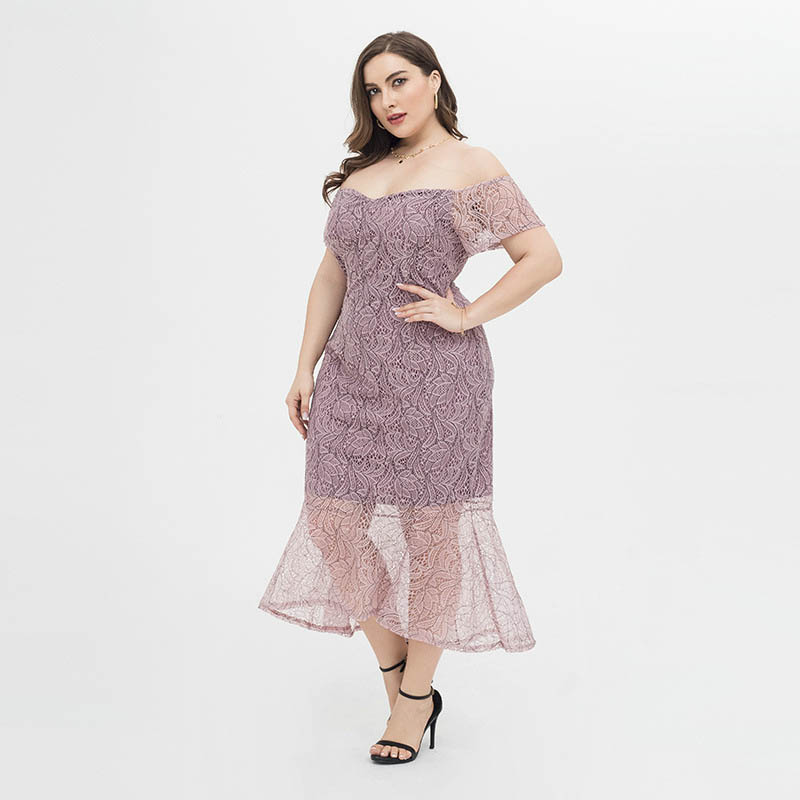 • Plus Size Off The Shoulder Hi-Lo Wedding Guest Dress #88211592131