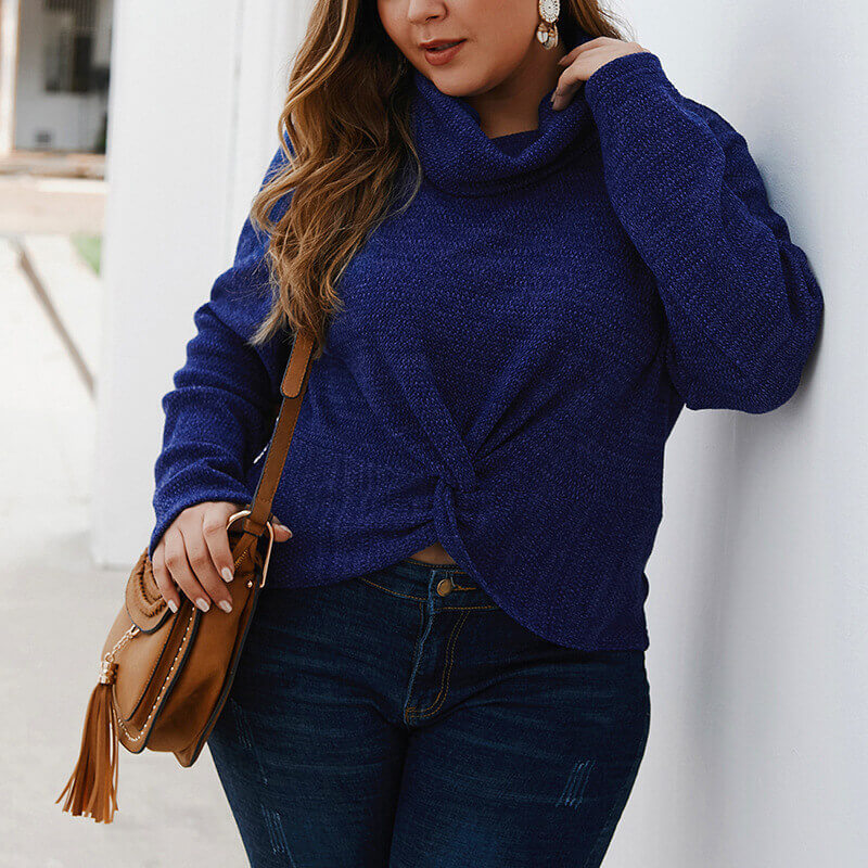 Plus Size Turtleneck Twist Front Sweater 88211592403#