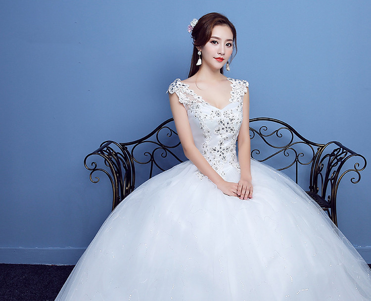 • Plus Size V Neck Beads Ball Gown Empire Wedding Dresses Floor Length Maternity Wedding Gowns #8434073231