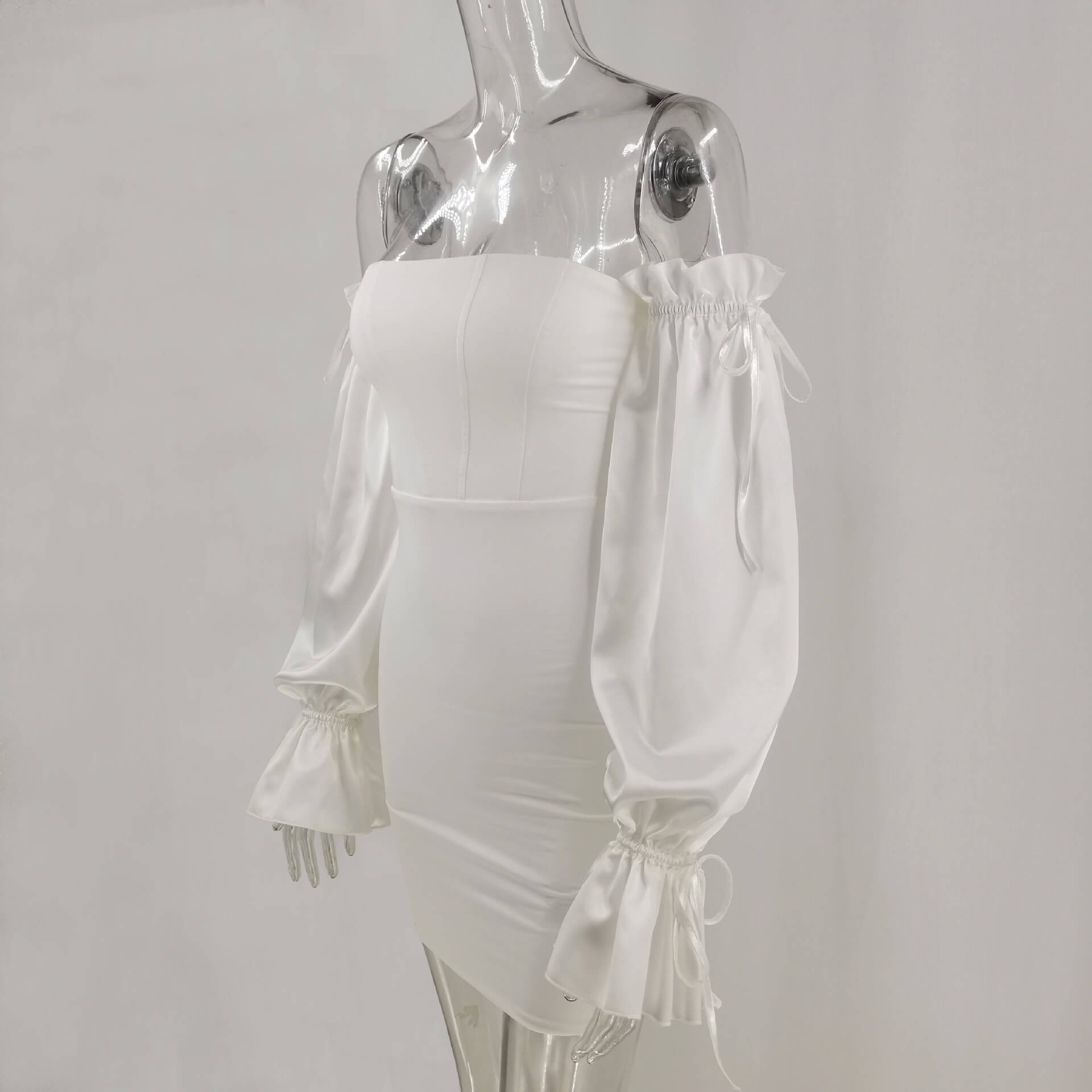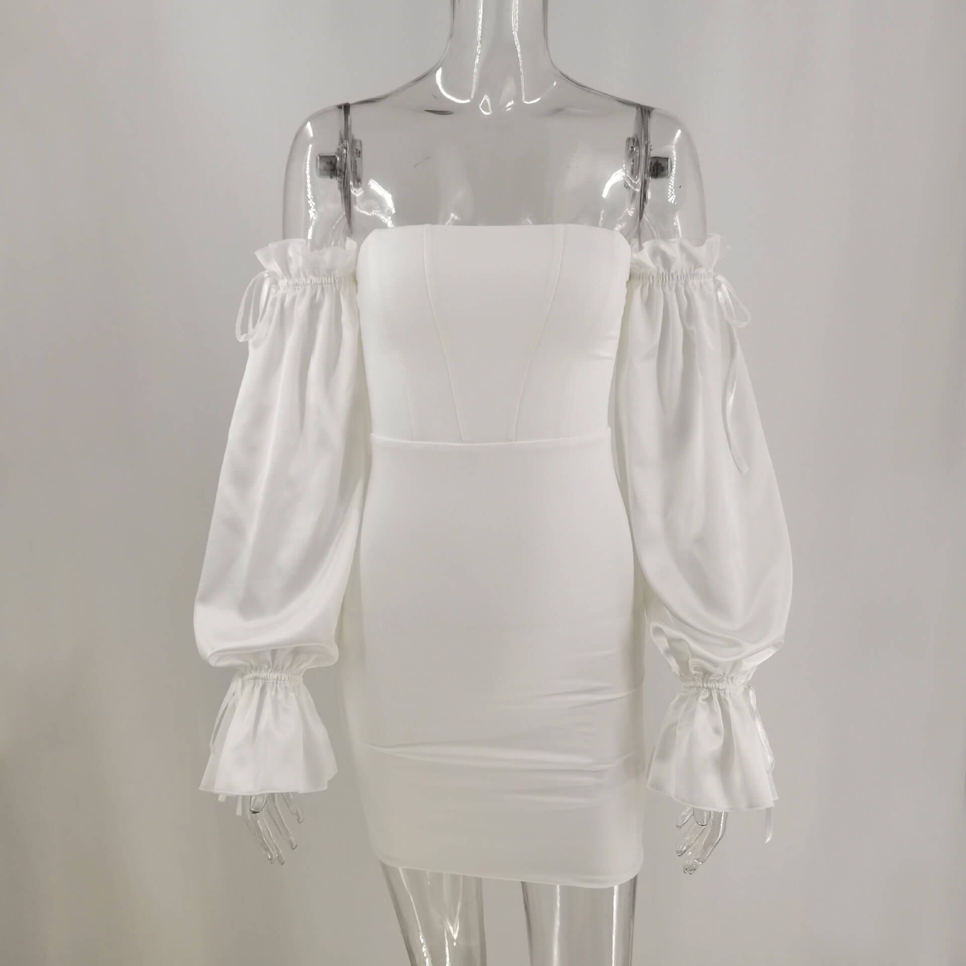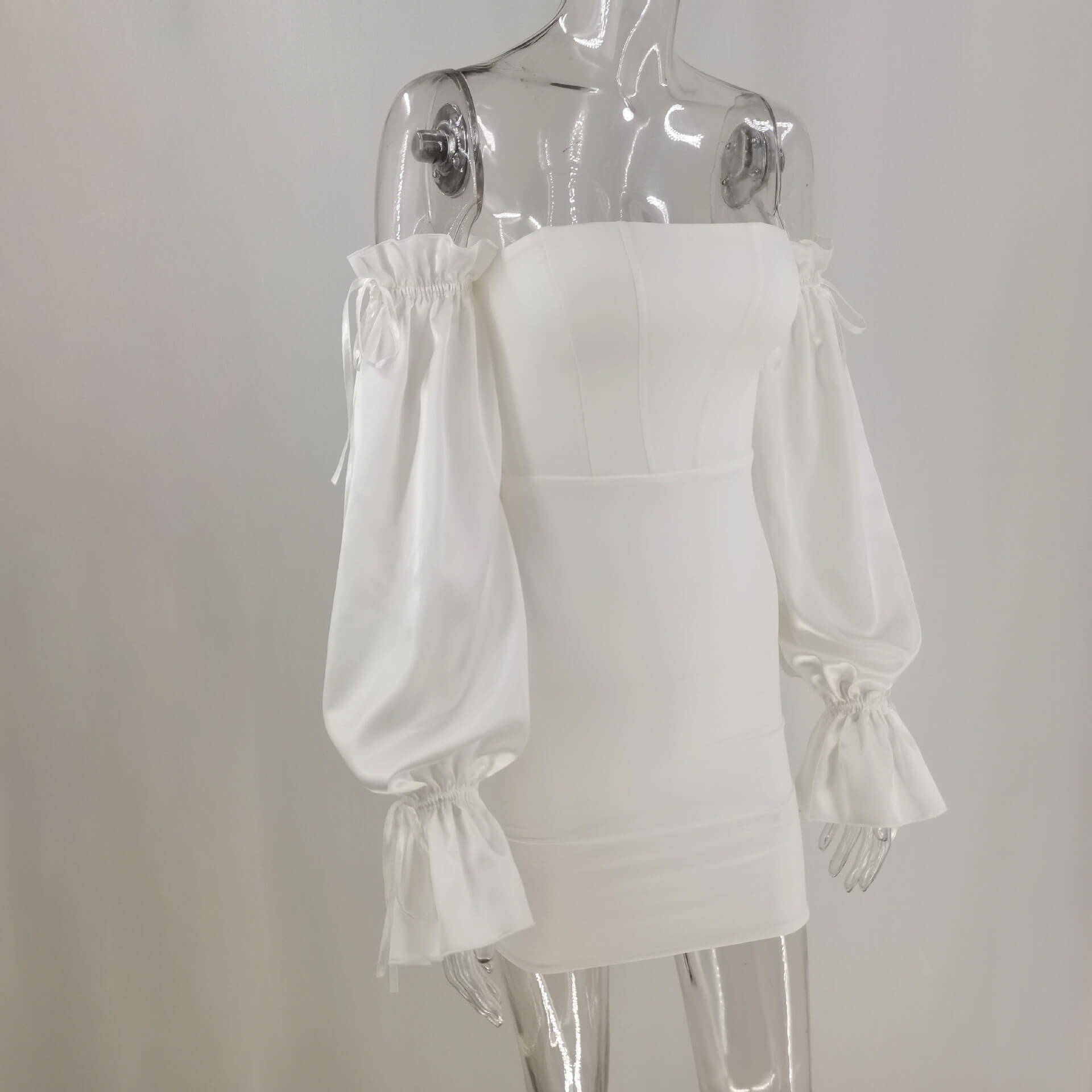 • Puff Sleeve Mini Bodycon Dress In White 88211592295#