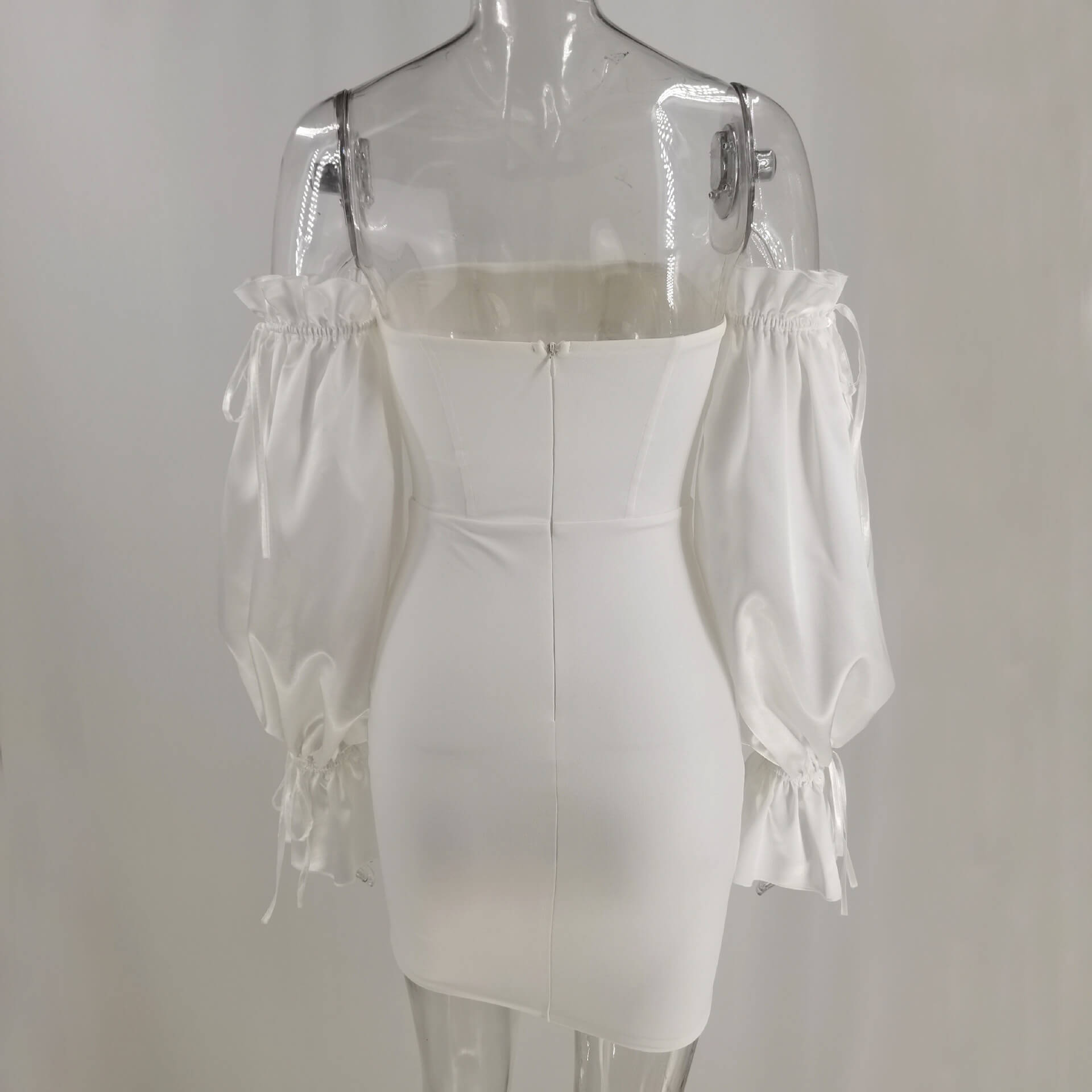 Puff Sleeve Mini Bodycon Dress In White 88211592295#
