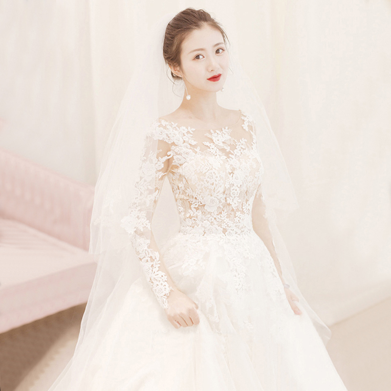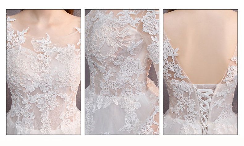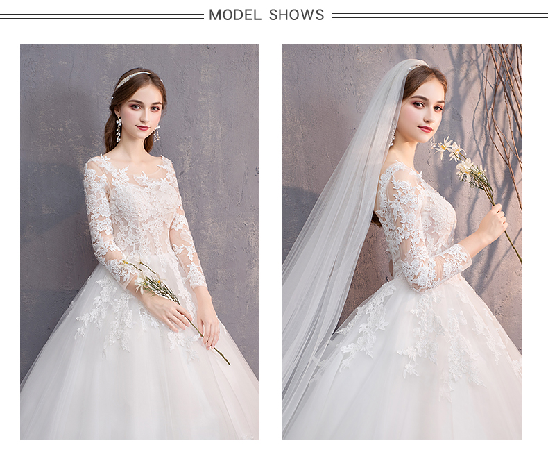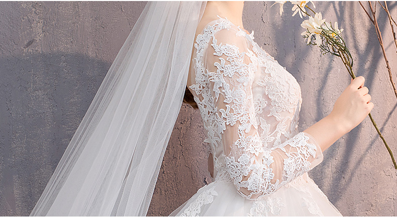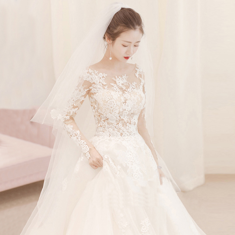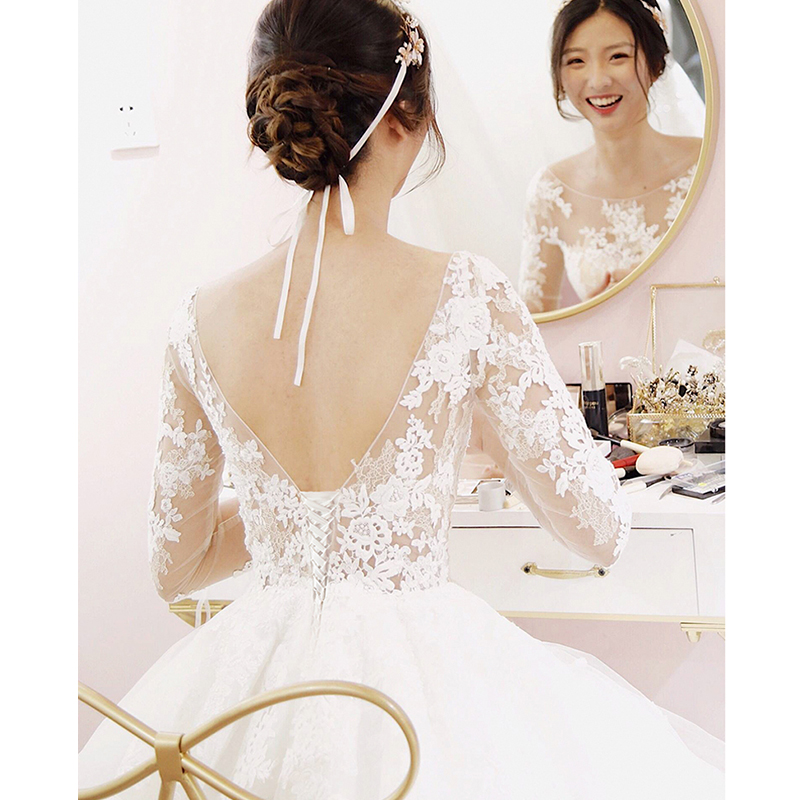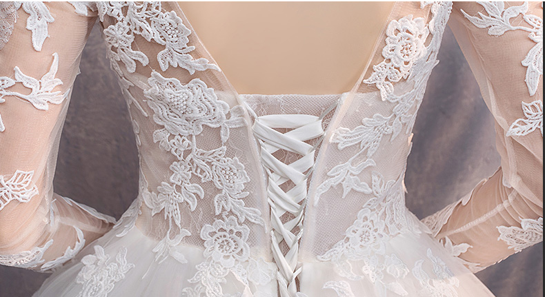 • Scoop Neck Long Sleeve Lace-up Court Train Bridal Wedding Dress #8434425712
