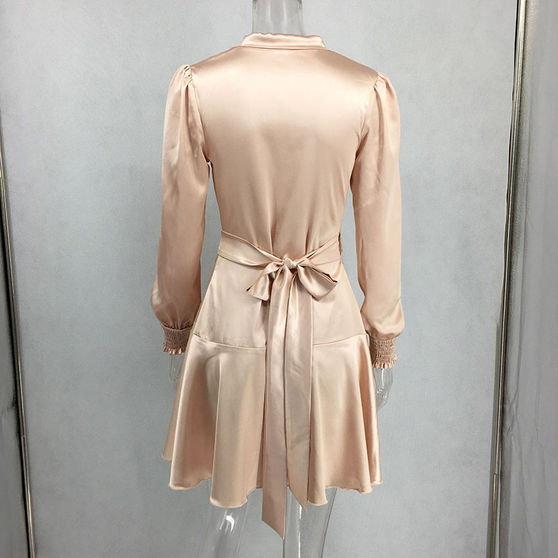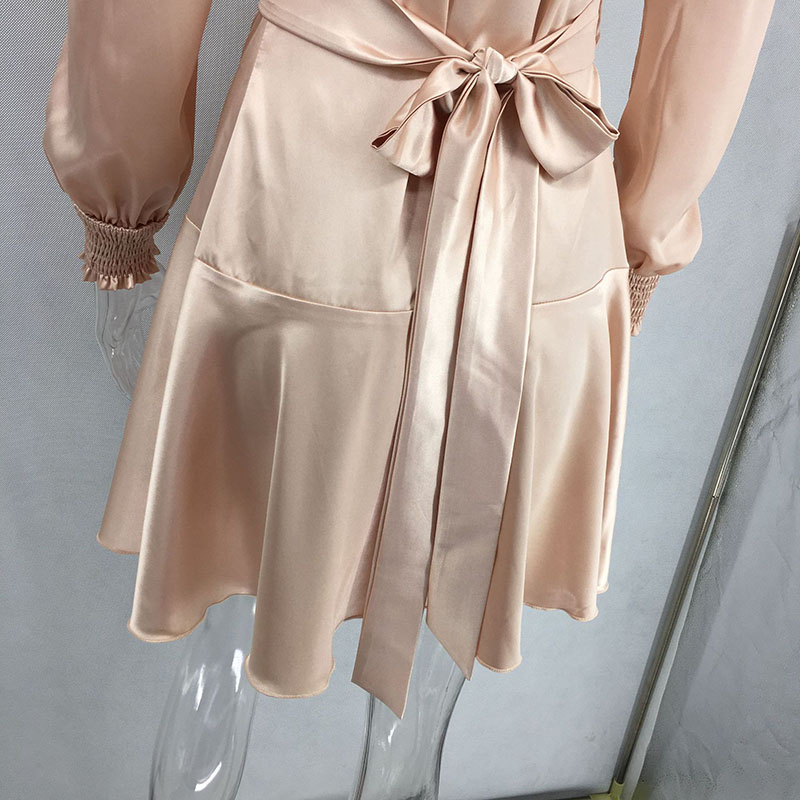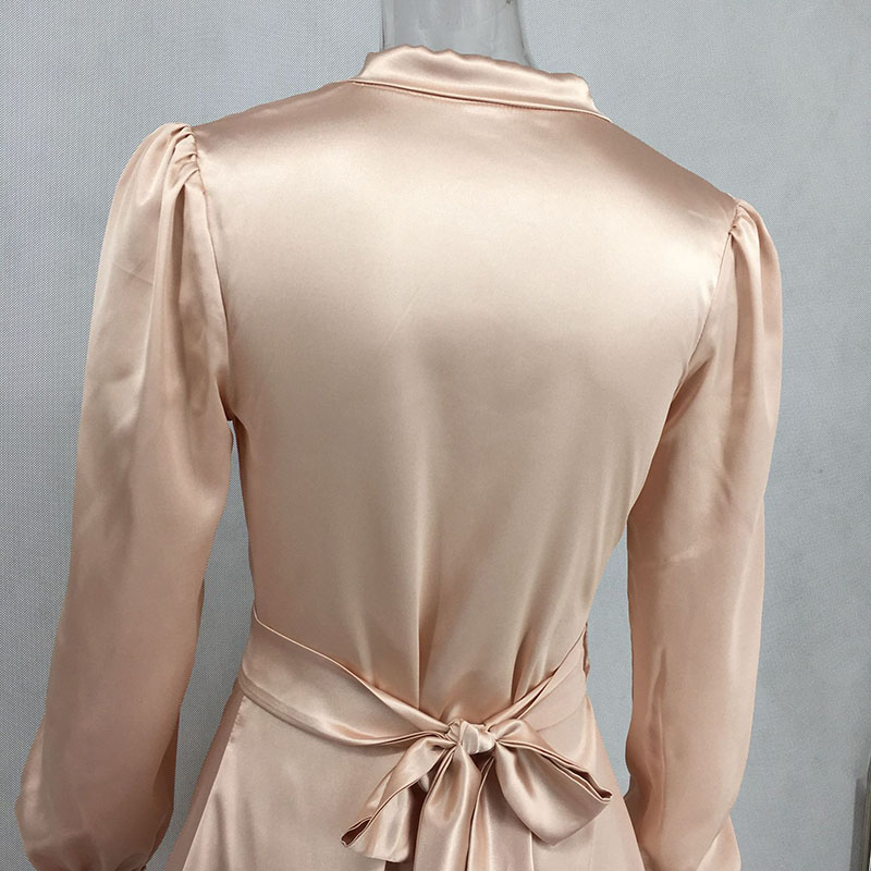 Shawl Collar Self Belted Asymmetrical Hem Wrap Satin Dress 88211592275#