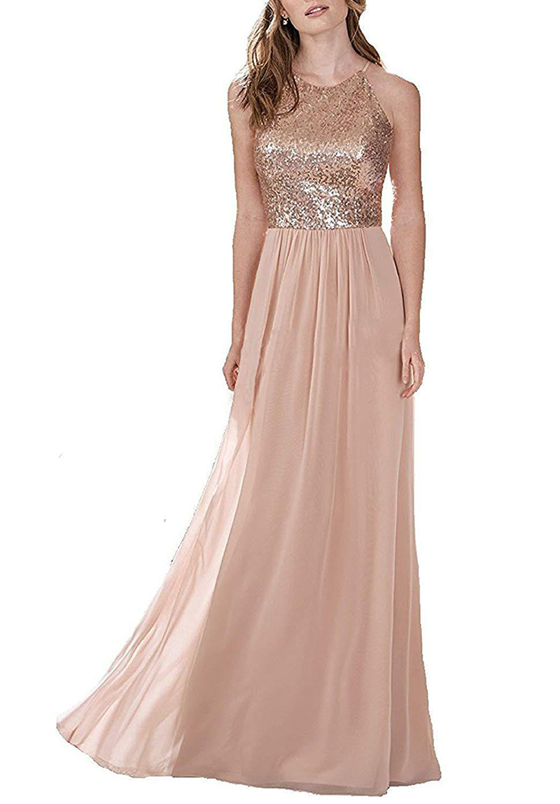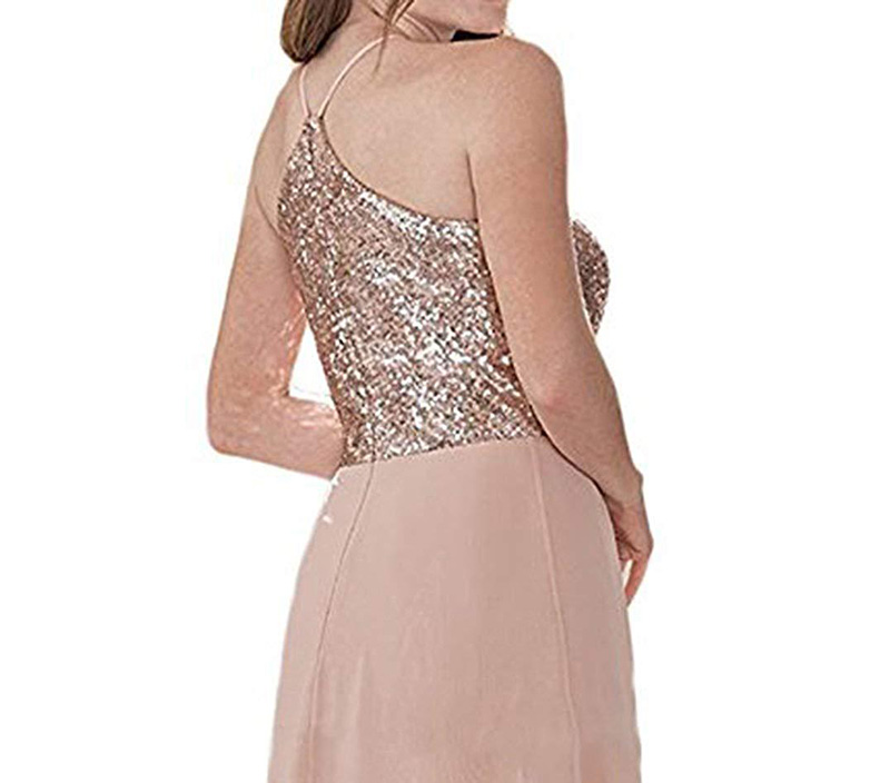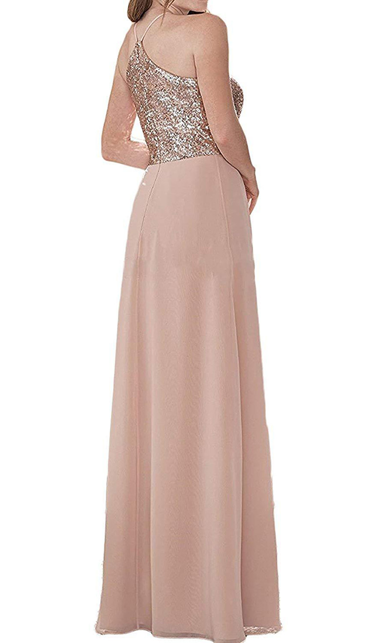 Shining Sequins Crew Neck Chiffon Bridesmaid Dress Floor Length Prom Gowns 8471712225#