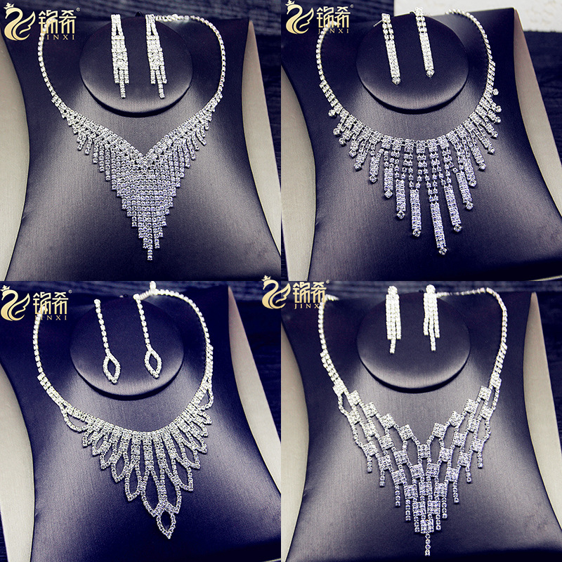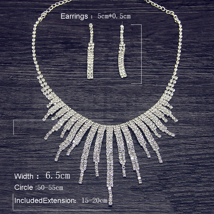 • Silver Plated Rhinestones Bridal Necklace Earrings Jewelry Set  #8514367475