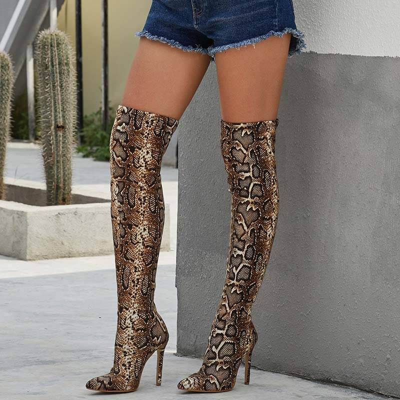 • Snakeskin Pattern Long Boots for Women #88211592313