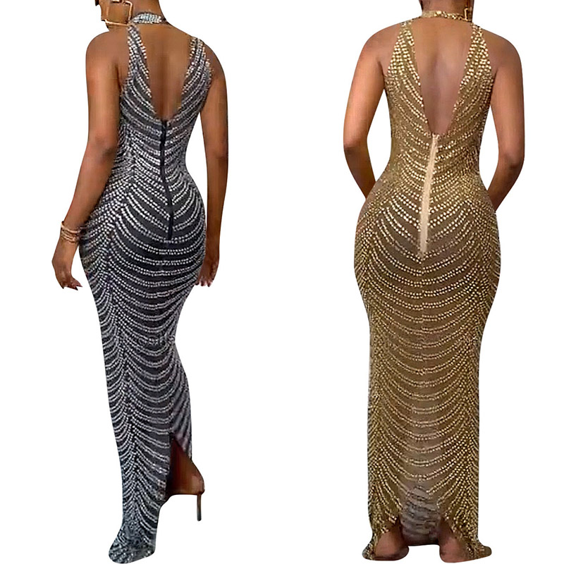 Details:Rhinestone,Split,Fringe,Low Back,Zipper,Bodycon