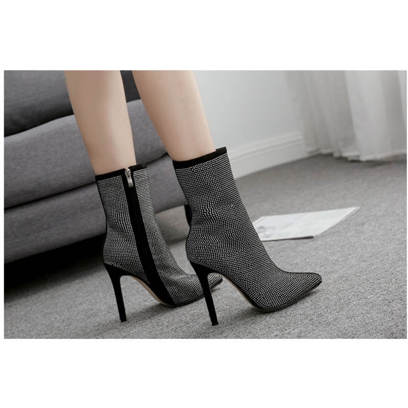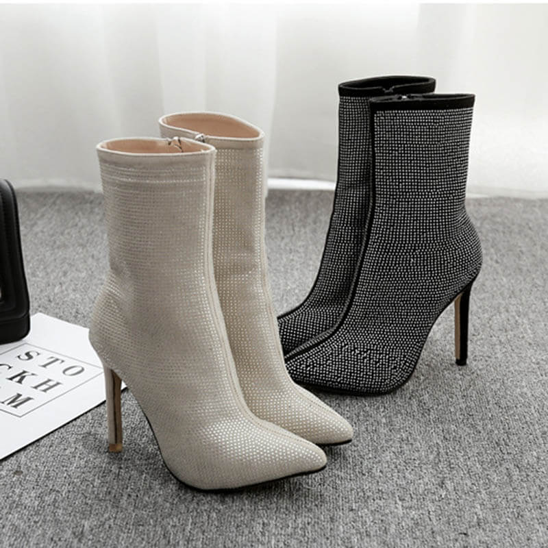 • Sparkling Rhinestones Mid Calf Stiletto Heel Boots #88211592455