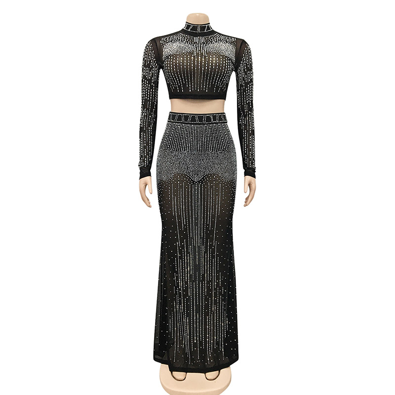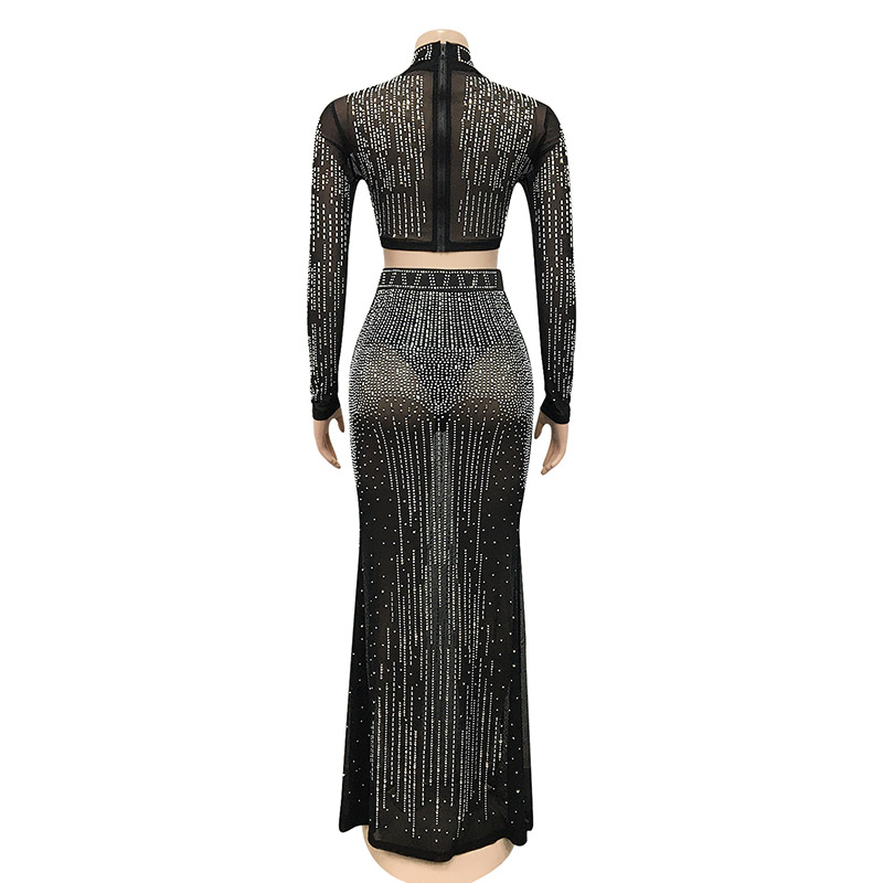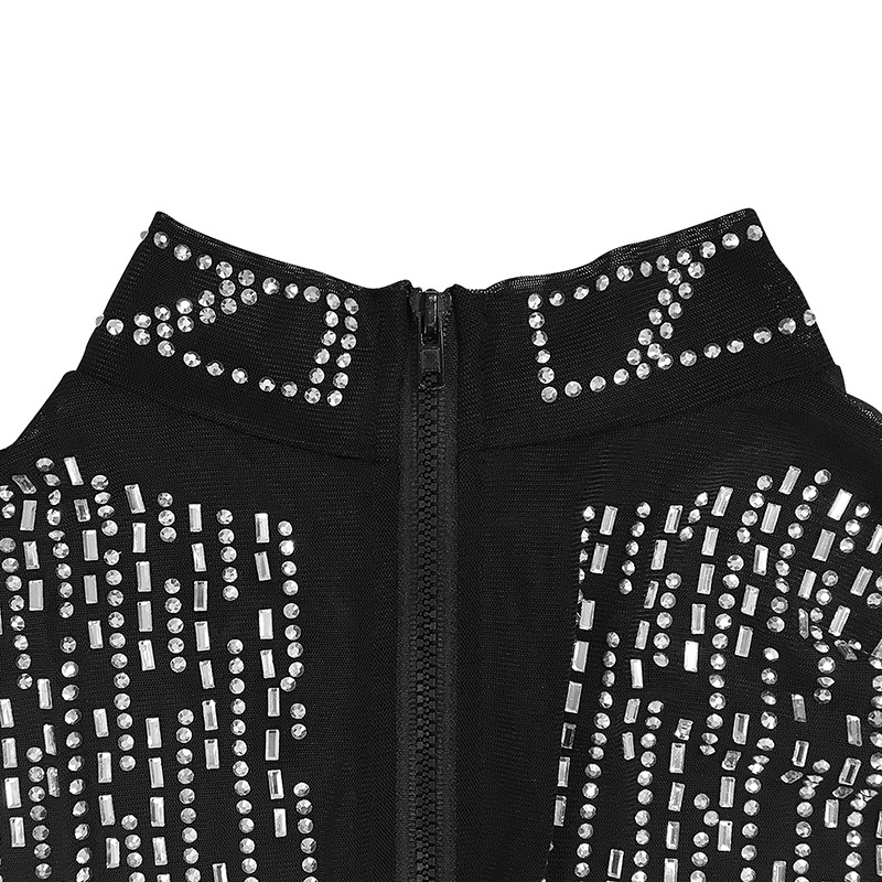 Details:Rhinestone,Bodycon,Zipper,Two-Piece
