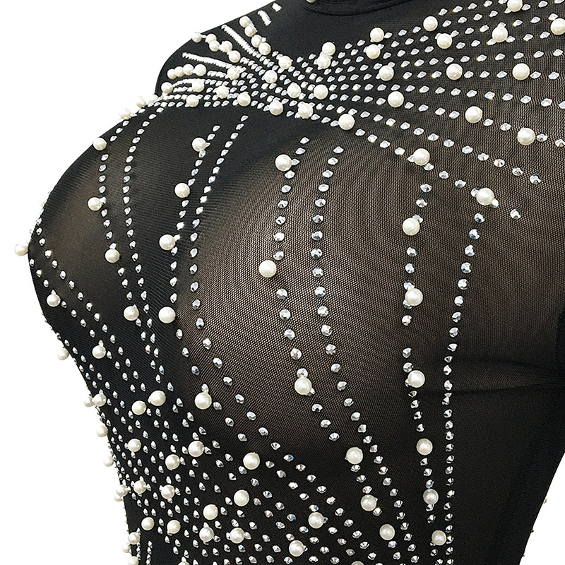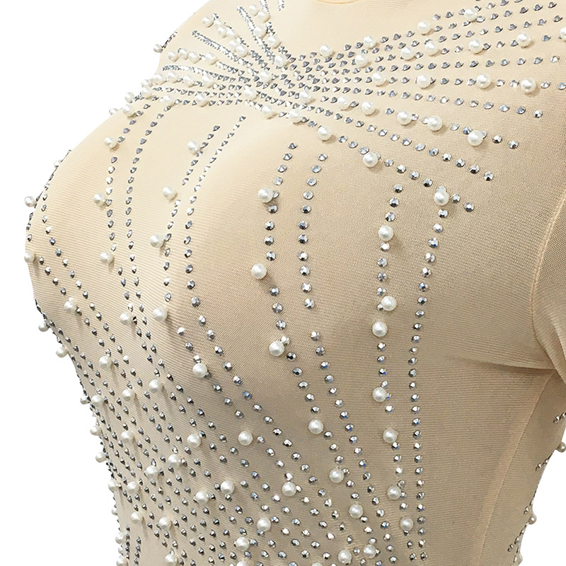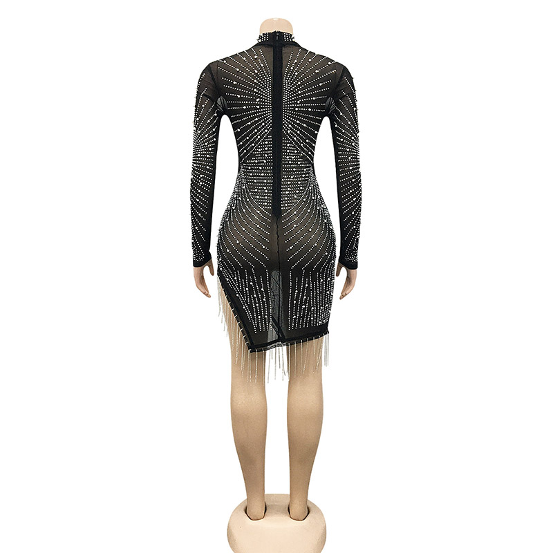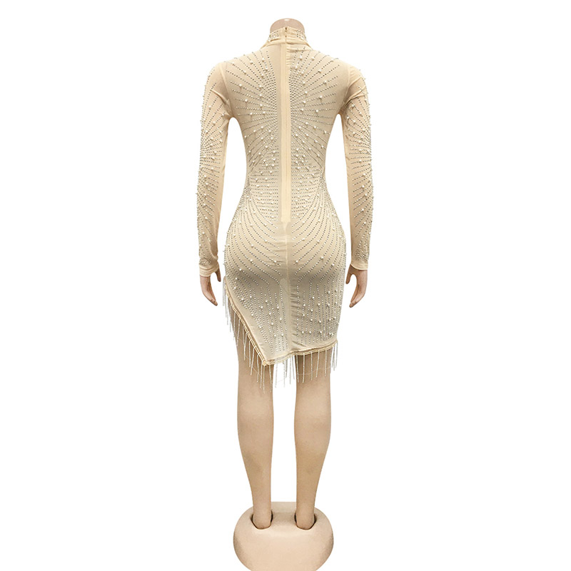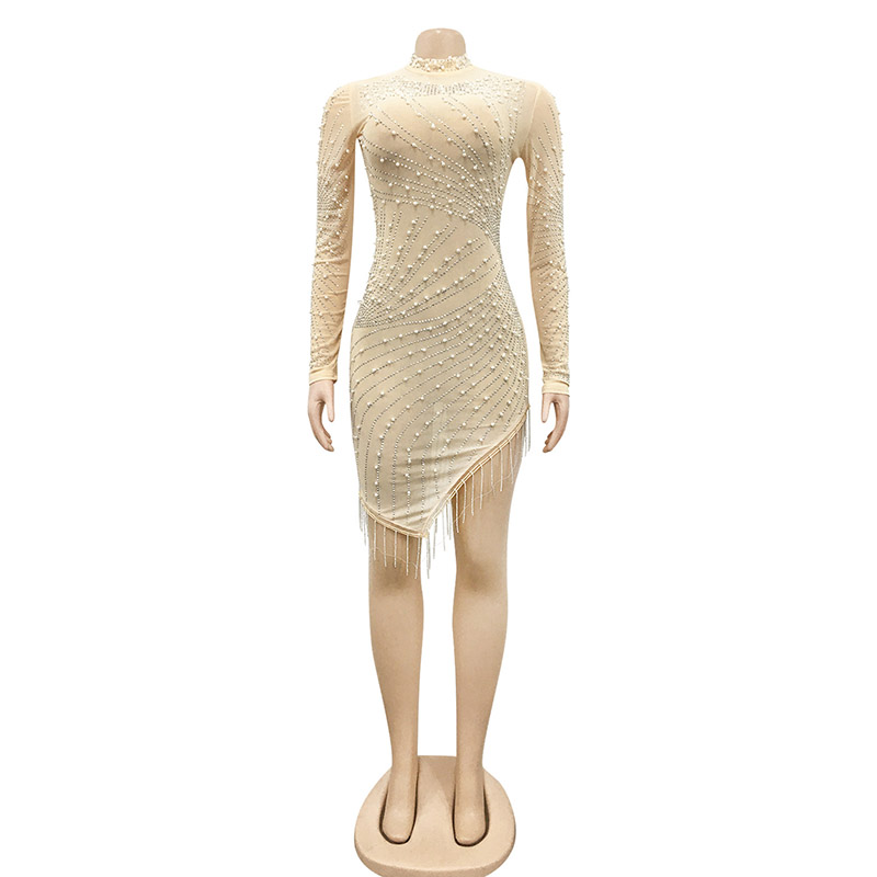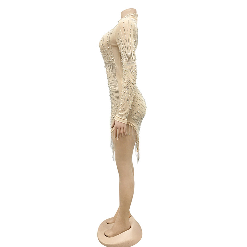 Details:Bodycon,Rhinestones,Pearls,Zipper,See Through,Fringe
