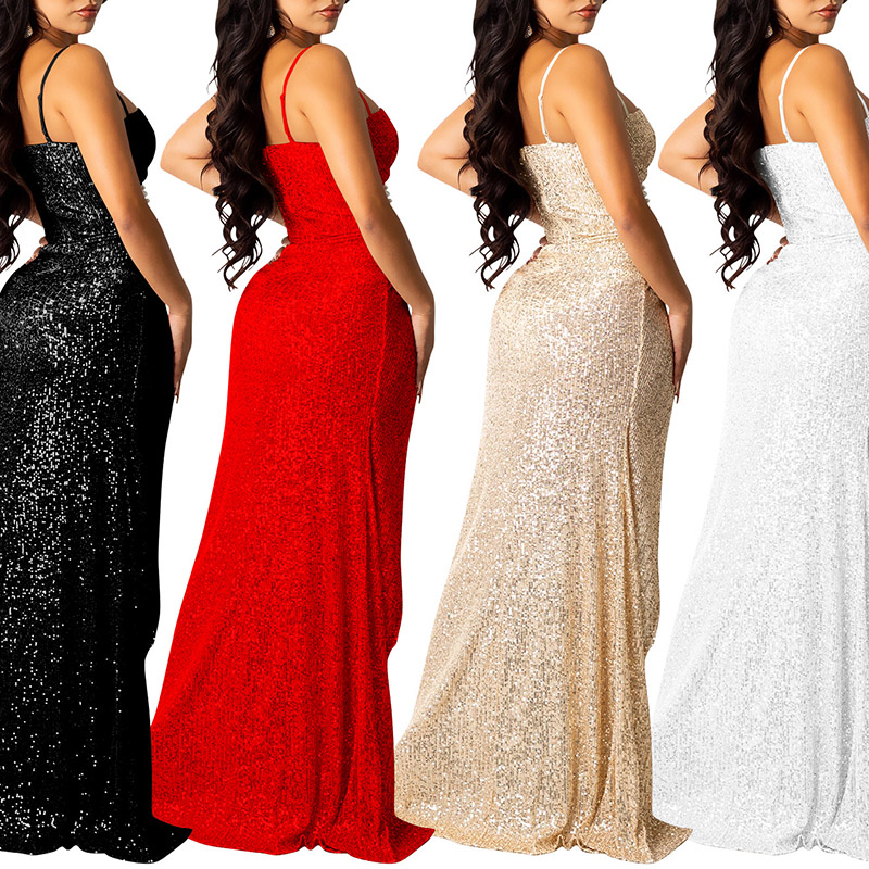 • Sparkly Rhinestones Spaghetti Strap Long Dress #88211592215