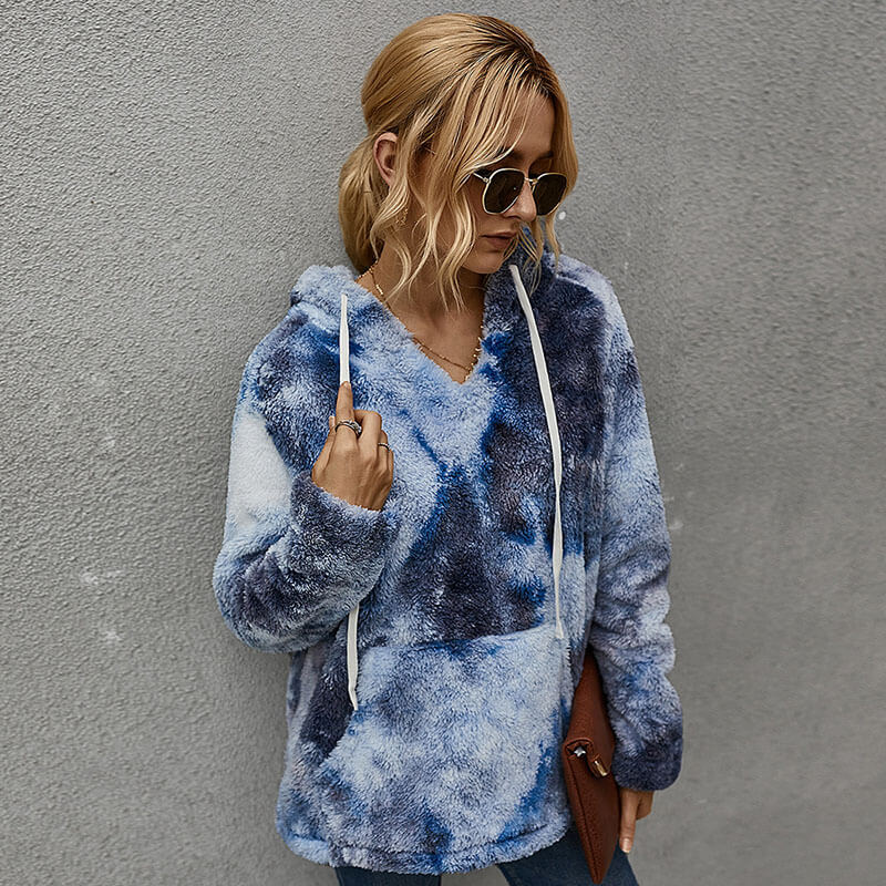 • Tie Dye Teddy Hoodie for Women 88211592424#