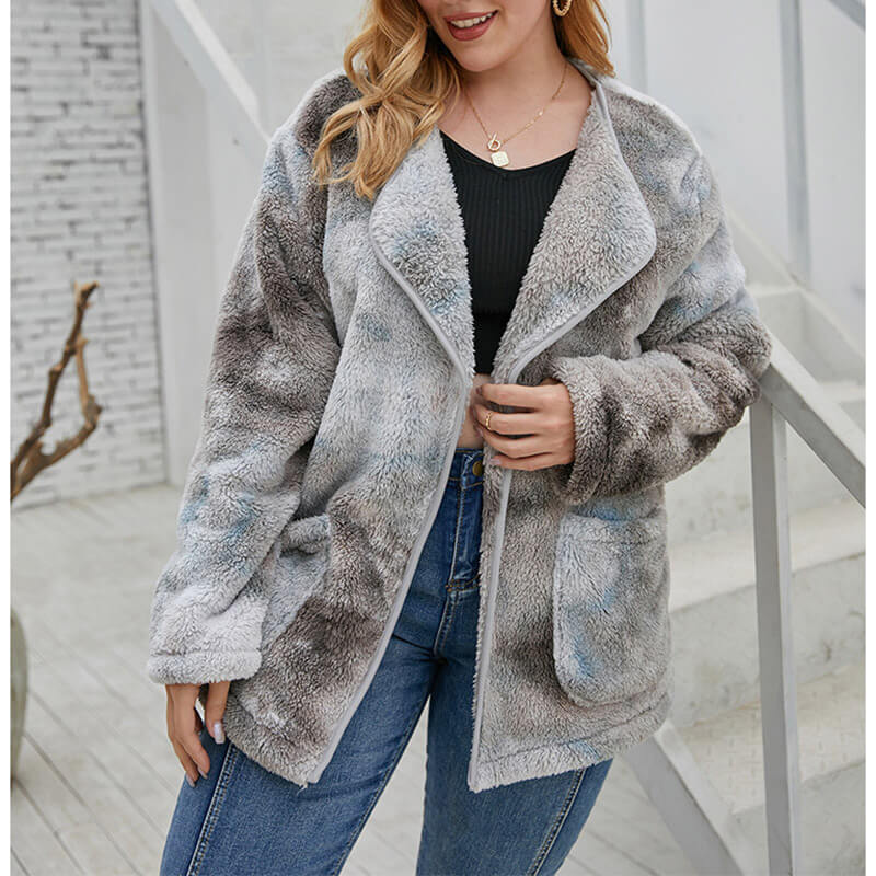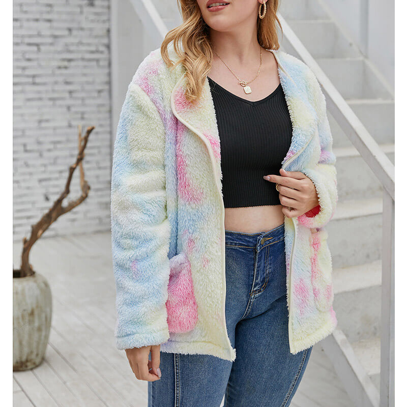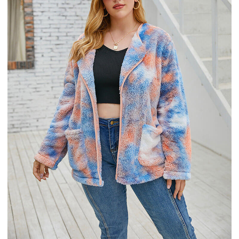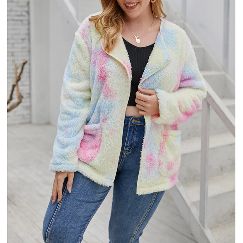 Tie Dye Teddy Jacket Plus Size 88211592406#
