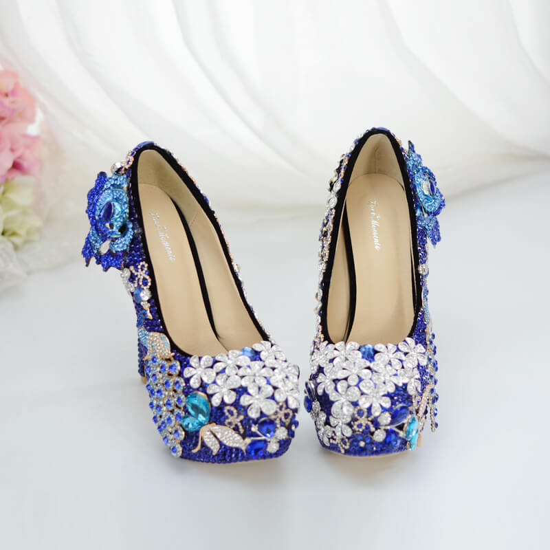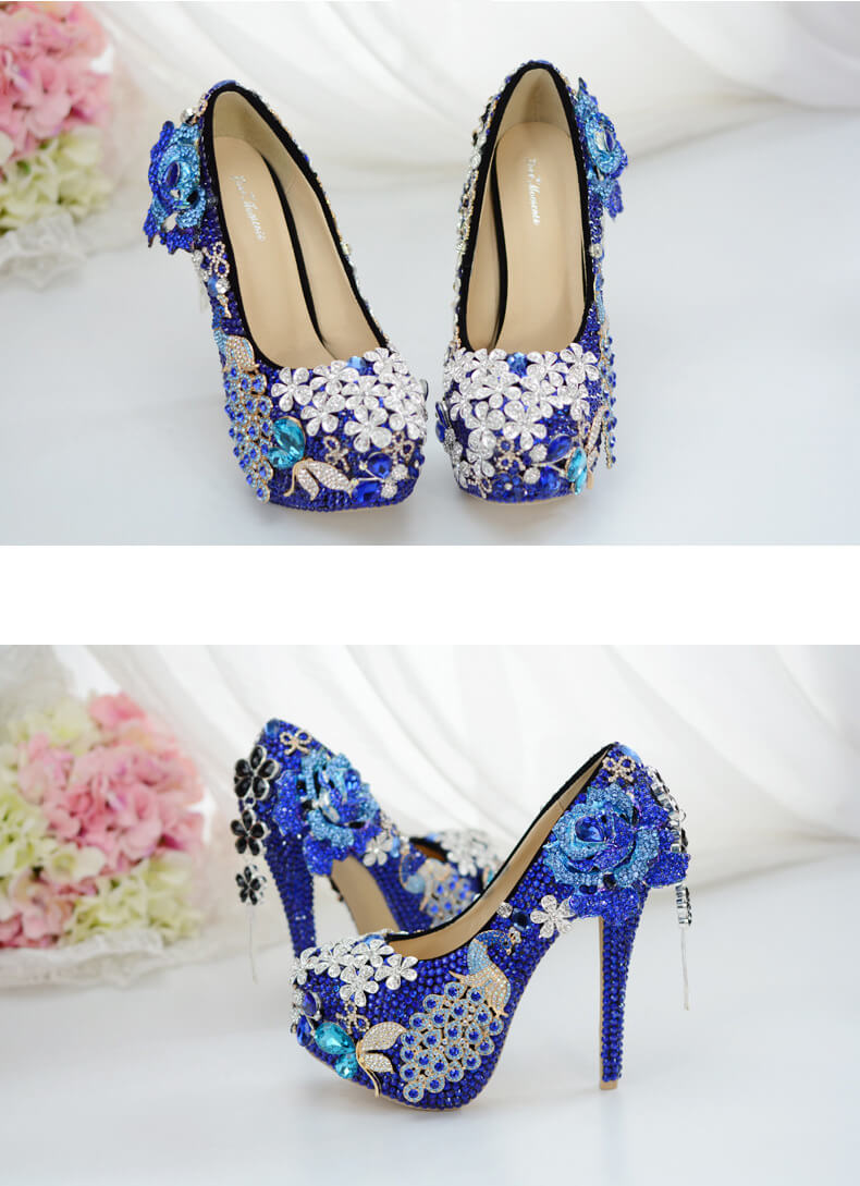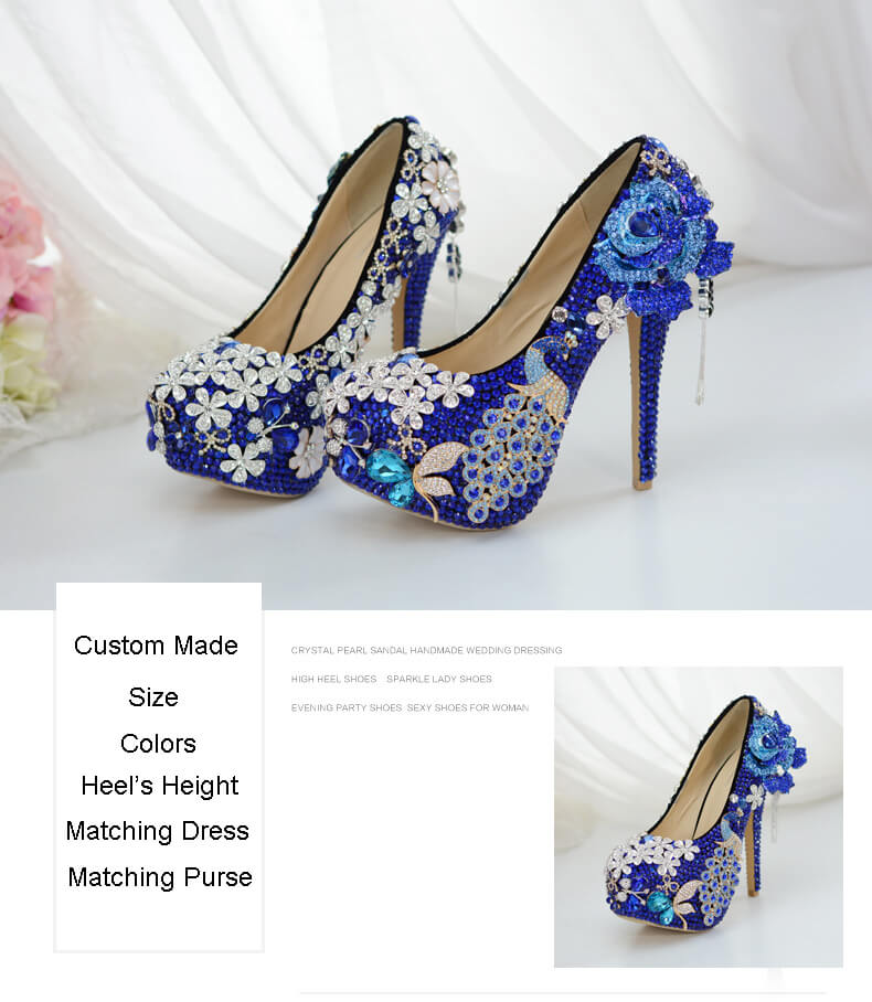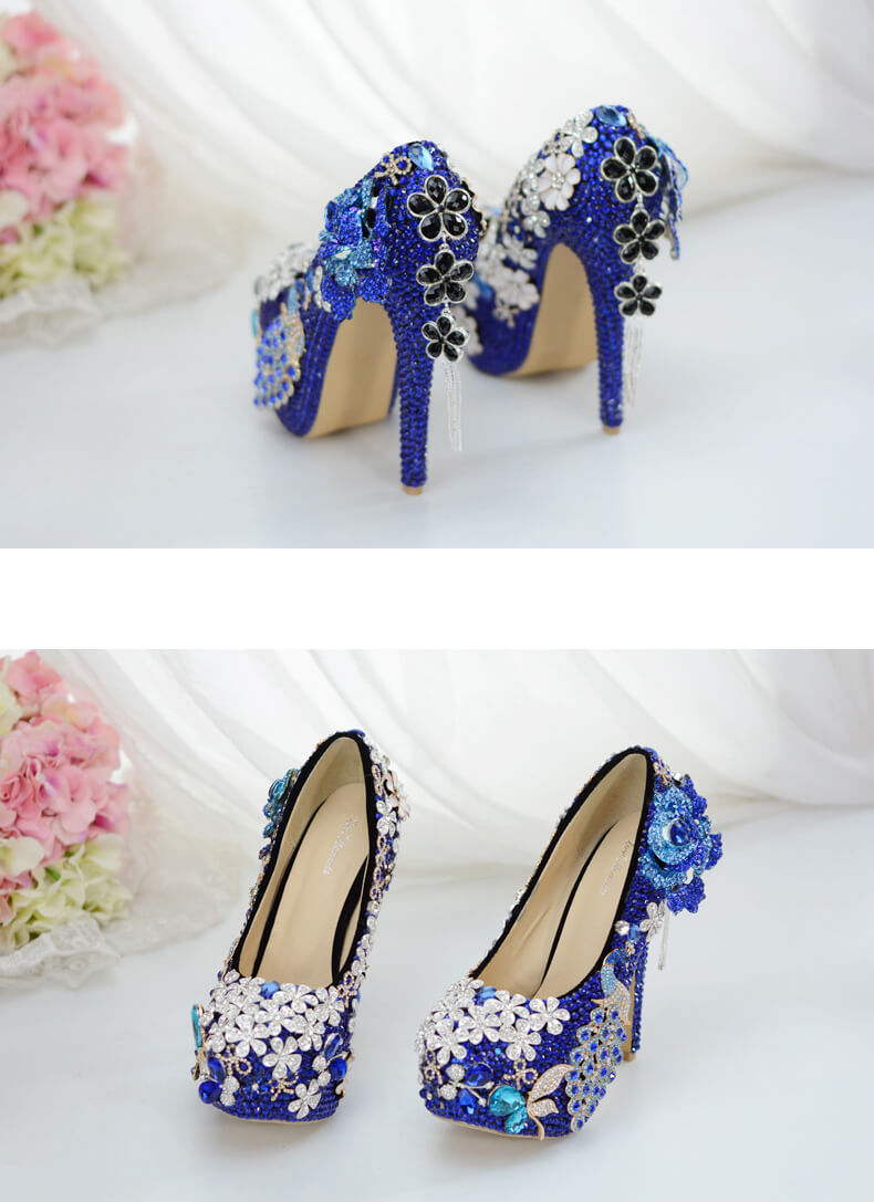 • Top Grade Blue Luxury Rhinestones Wedding Dress Shoes Evening Prom Stiletto Heel Custom Made #8511643279