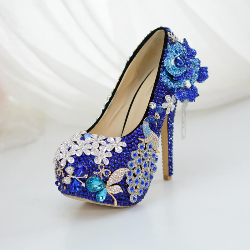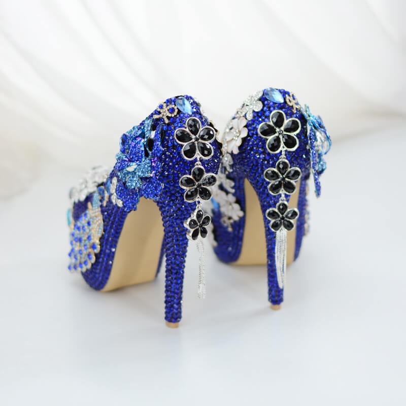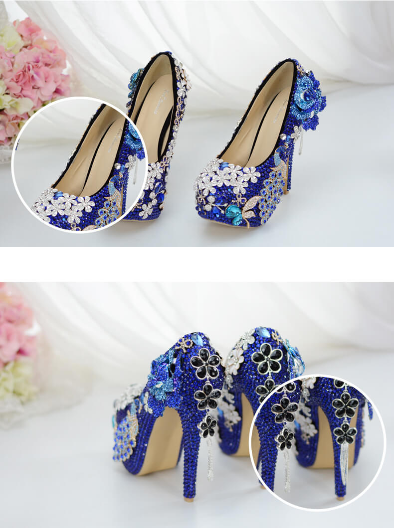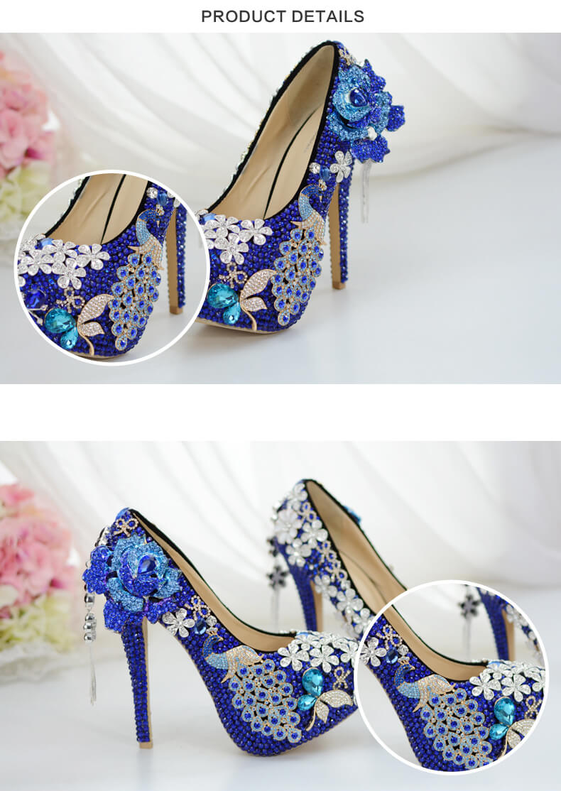 Top Grade Blue Luxury Rhinestones Wedding Dress Shoes Evening Prom Stiletto Heel Custom Made #8511643279