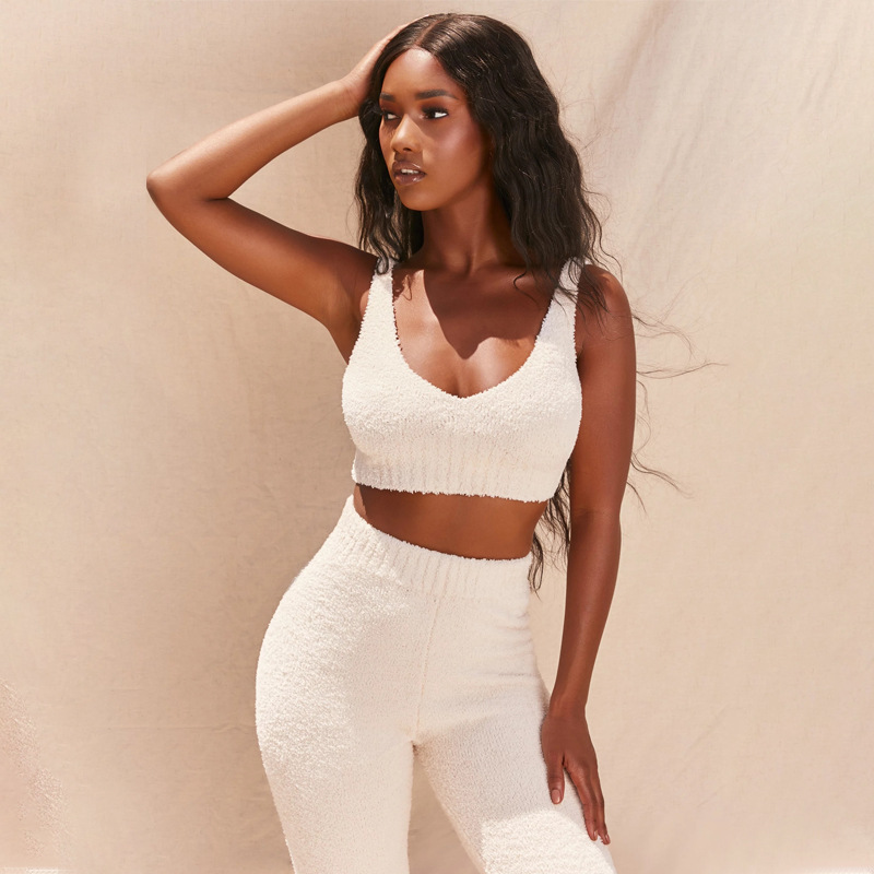 • Two Piece White Fluffy Outfit 88211592274#