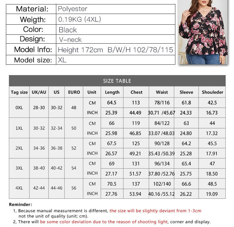 • V Neck Floral Print Blouse Top Plus Size 88211592439#