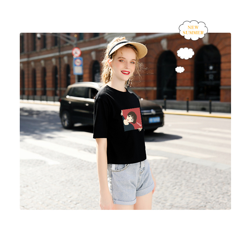 Womens Pattern Printed T Shirt Tops Summer Short Sleeve Shirts Ladies Cotton Tees 8888505935#