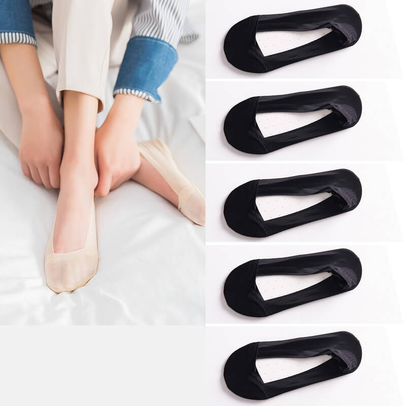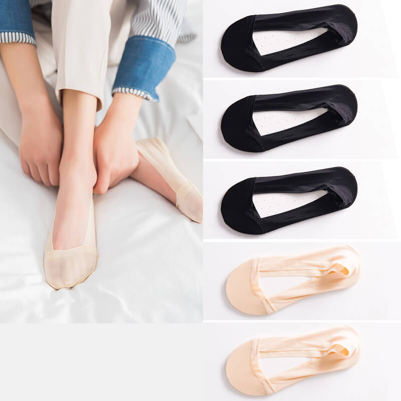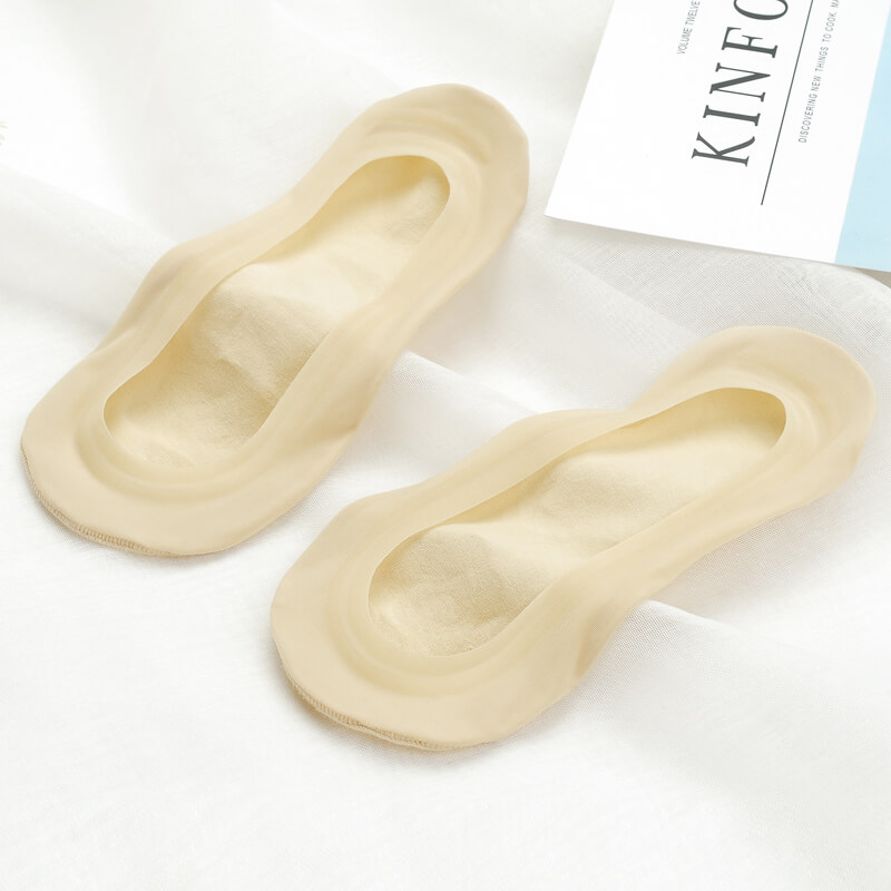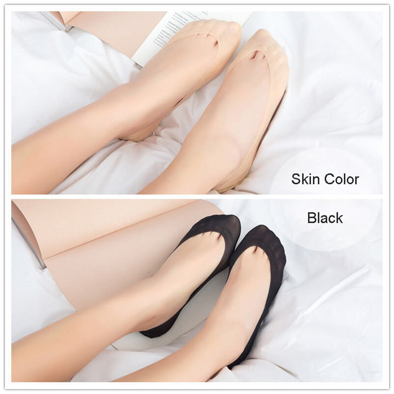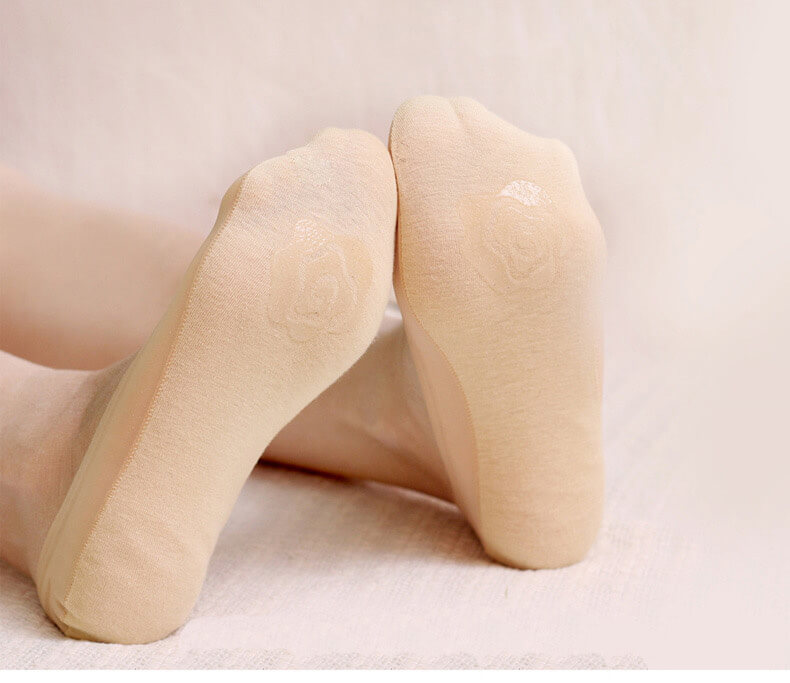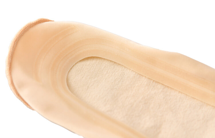 The nonslip bottom and the silicone strip just on the inside where it grips the foot so it won't slip off.