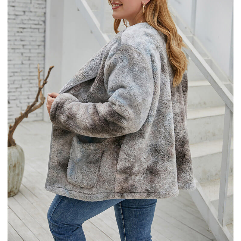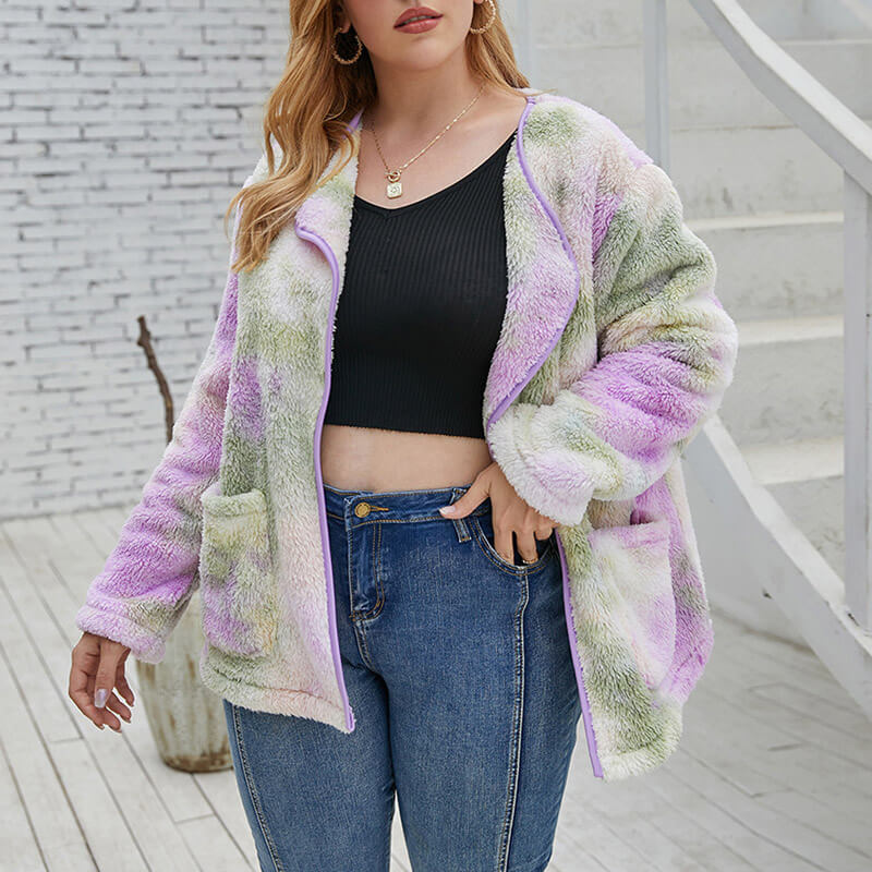 Zip Up Tie Dye Teddy Jacket Plus Size 88211592408#
