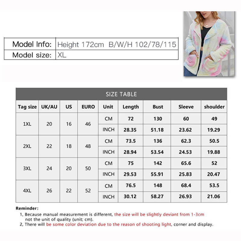 • Zip Up Tie Dye Teddy Jacket Plus Size 88211592408#